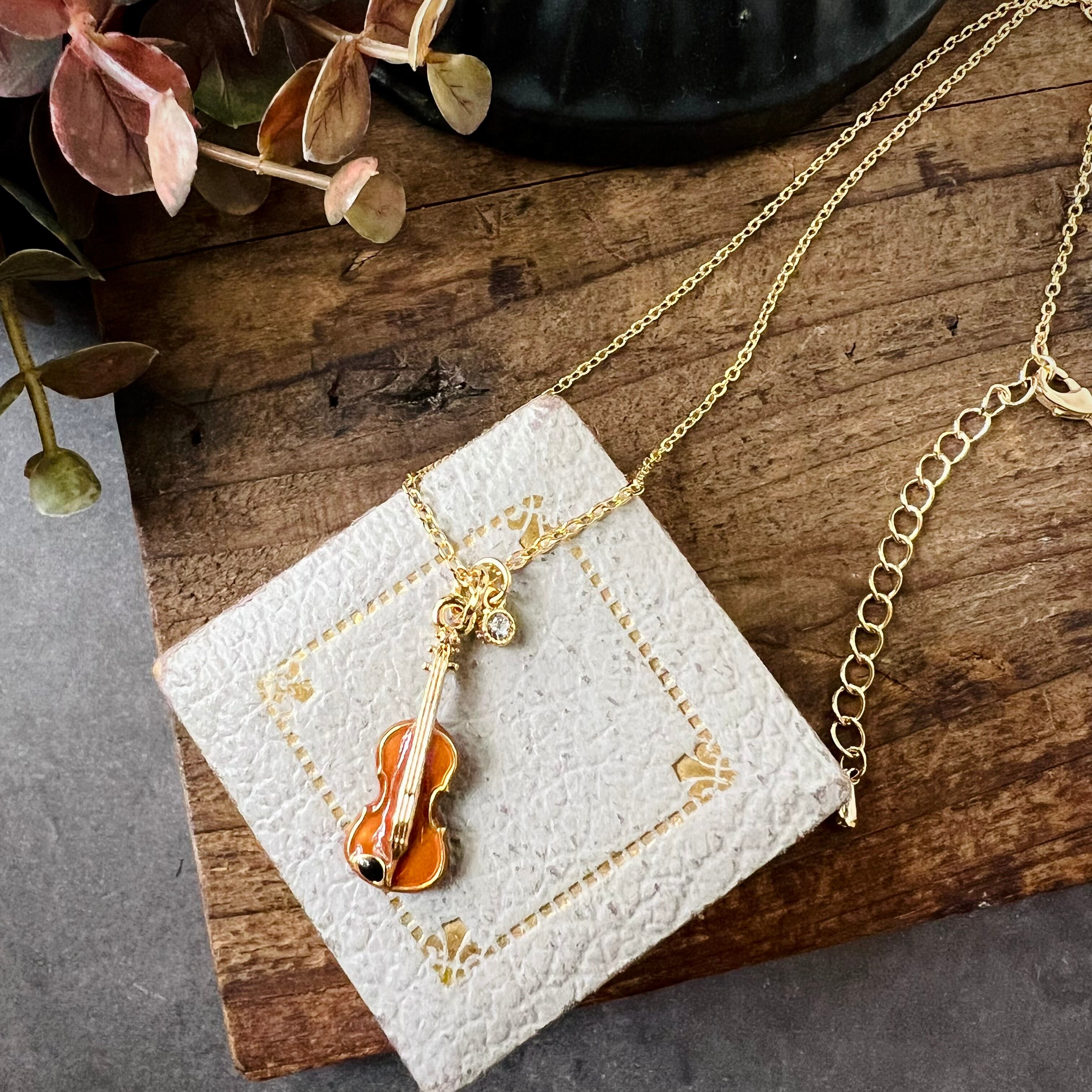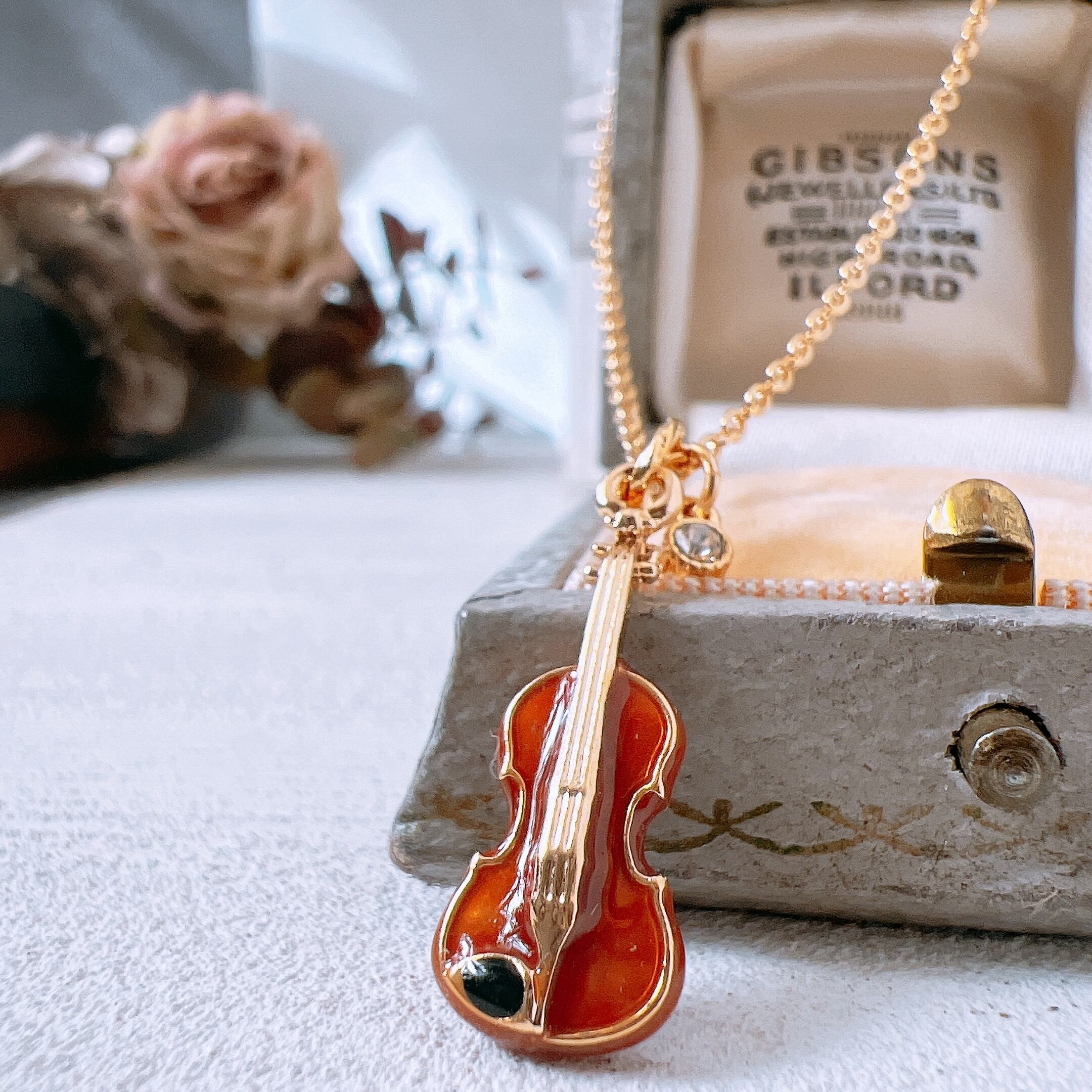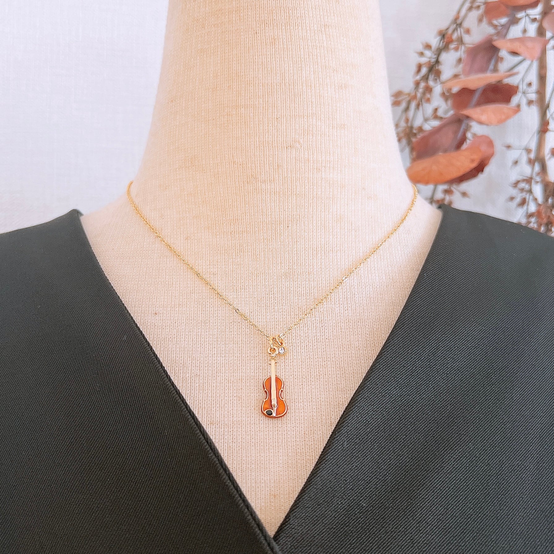 小さく立体的なバイオリンチャームが可憐に胸元で揺れる、上品な音楽モチーフのネックレスです。