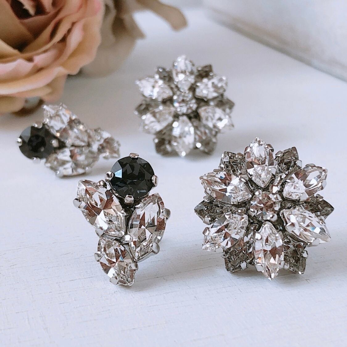 お花のように見えるボタニカルなシェイプで可愛らしく耳元でキラキラと華やかに輝きます。
