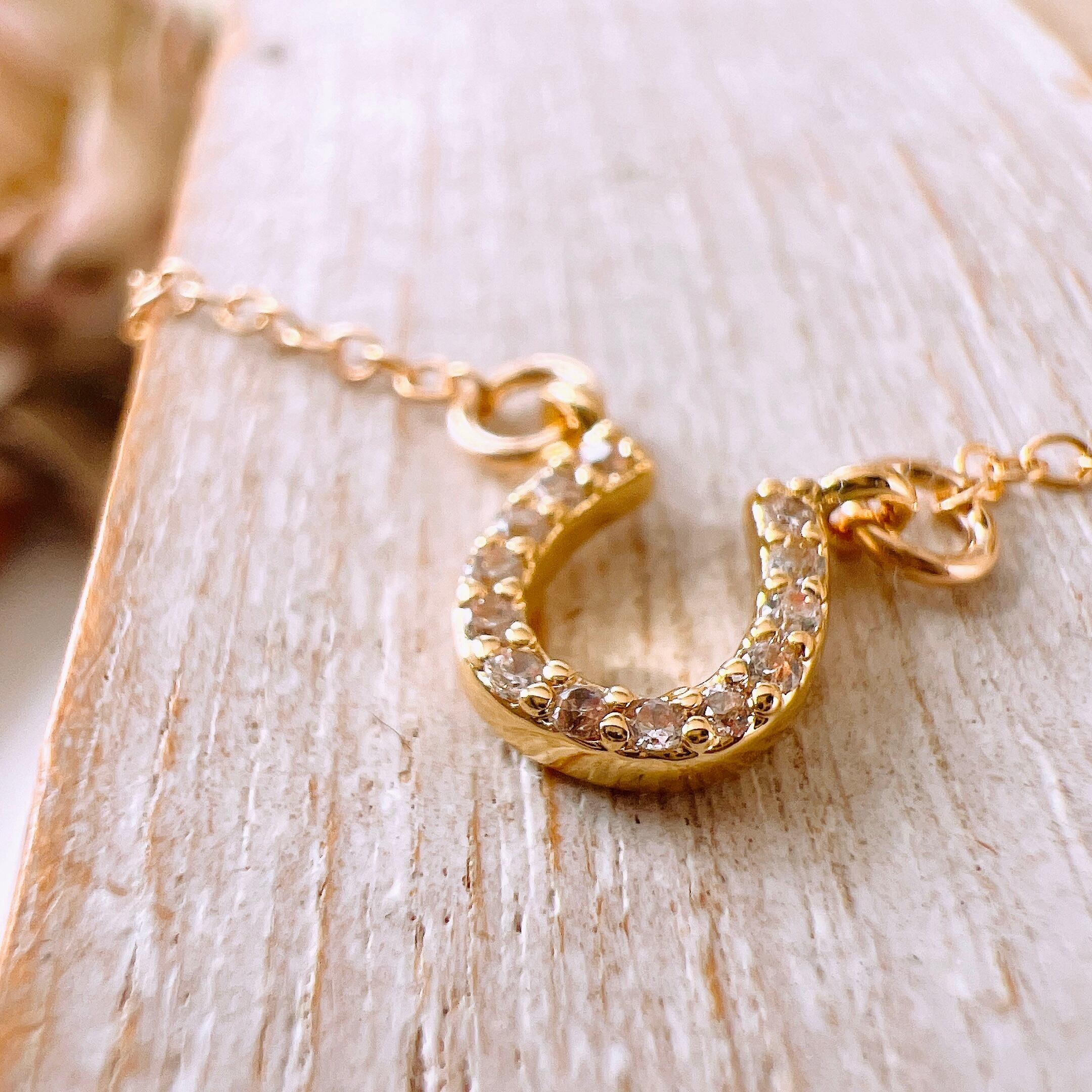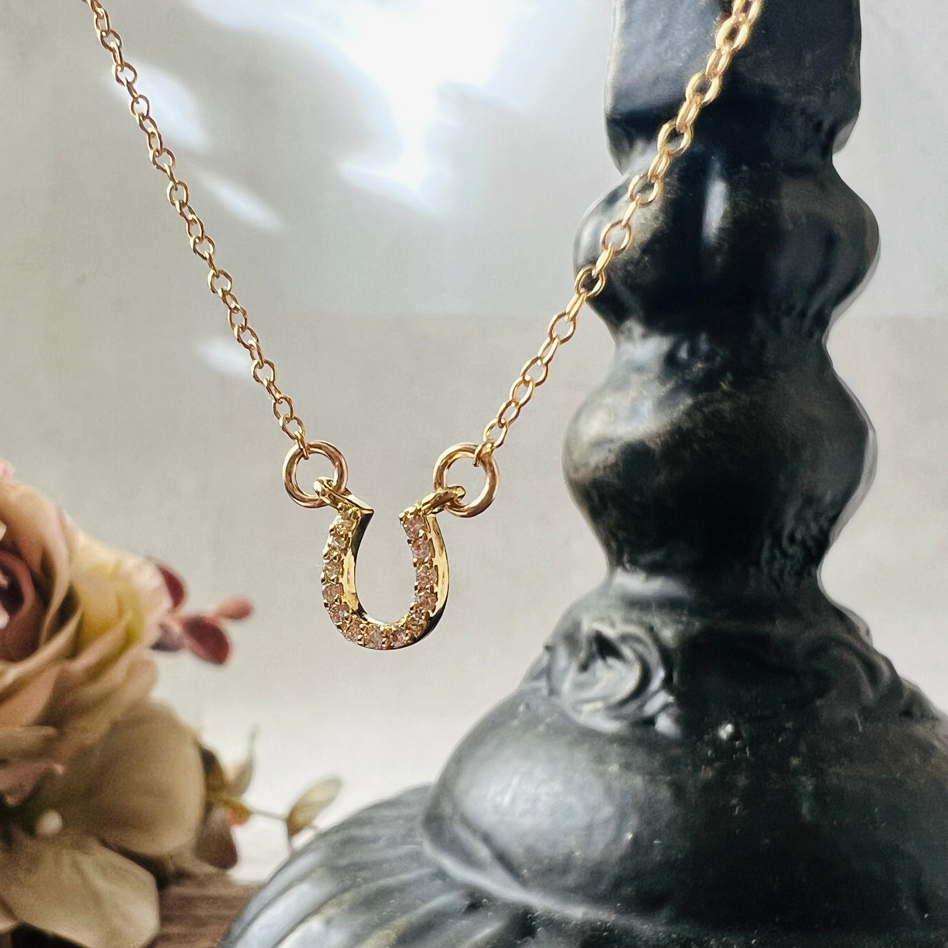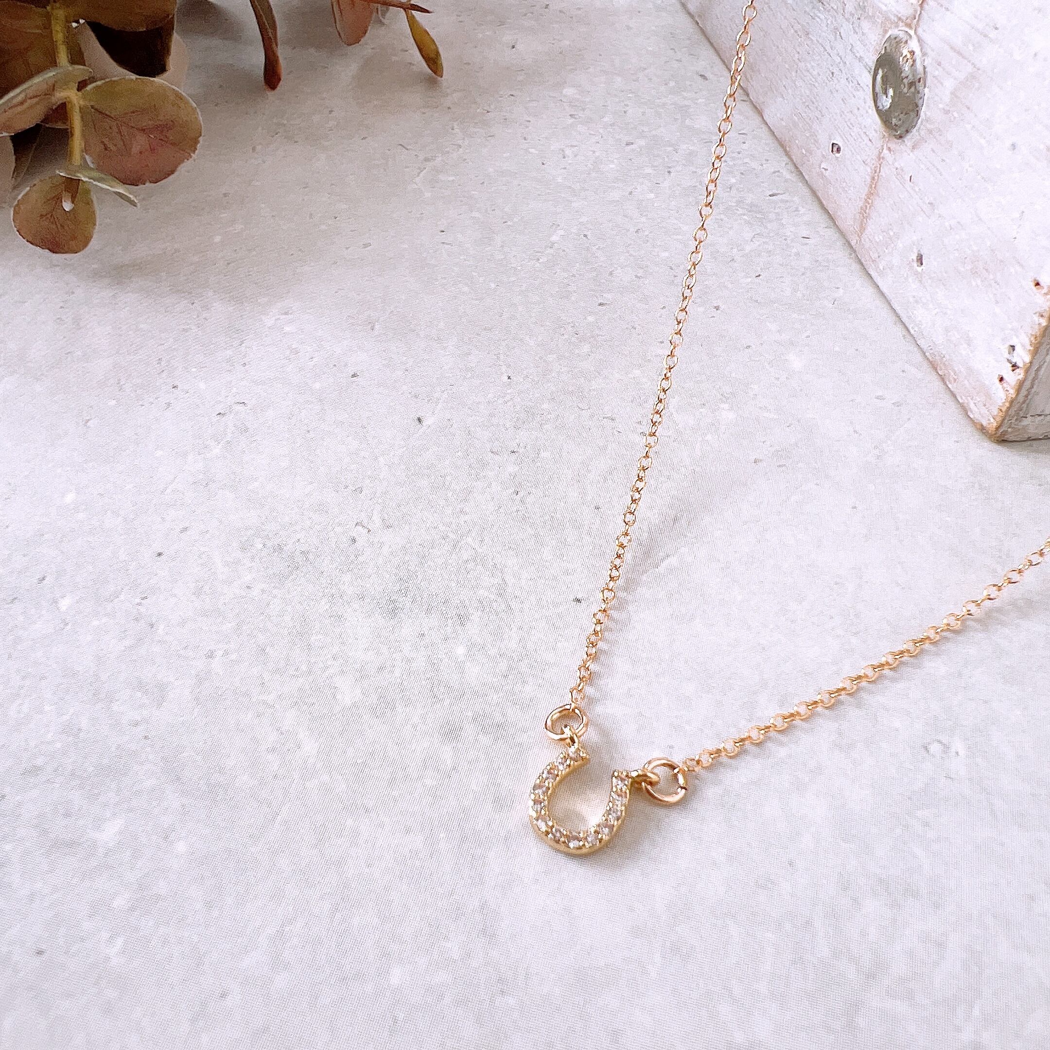 馬蹄ネックレス ホースシューモチーフ 14kgf ネックレス キュービックジルコニア ゴールドアクセサリー 幸運モチーフ お守りジュエリー 華奢ネックレス シンプルジュエリー プレゼント 女性 ギフトアクセサリー 上品ネックレス デイリーアクセサリー