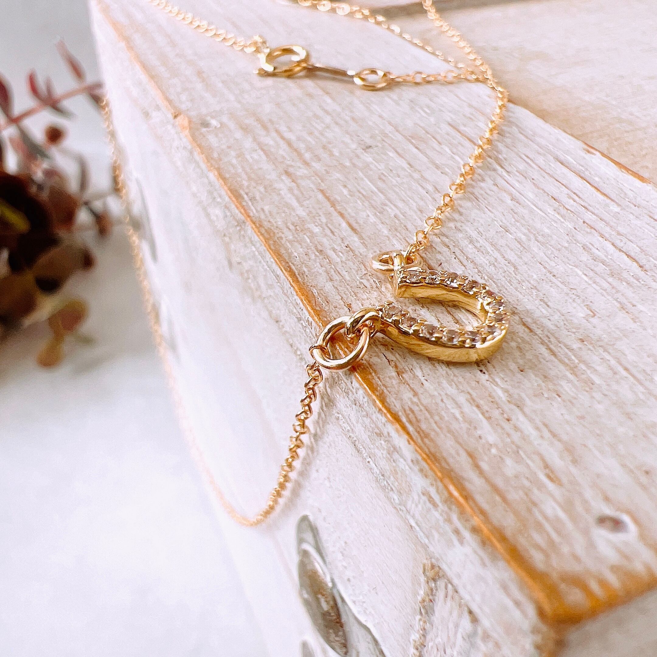 幸運を呼ぶといわれる馬蹄(ホースシュー)モチーフに、13石のキュービックジルコニアを丁寧に敷き詰めた上品なネックレスです。