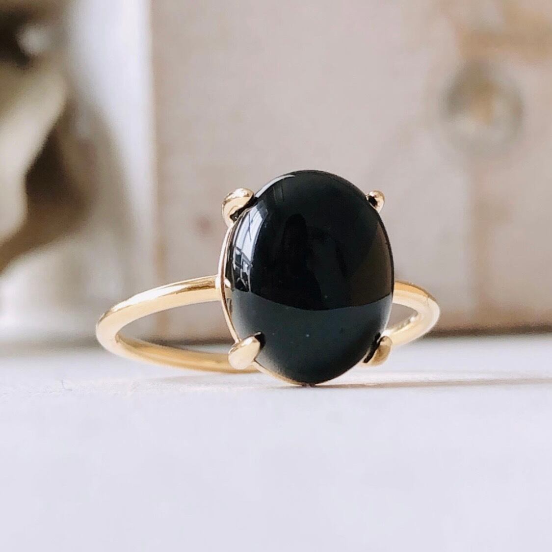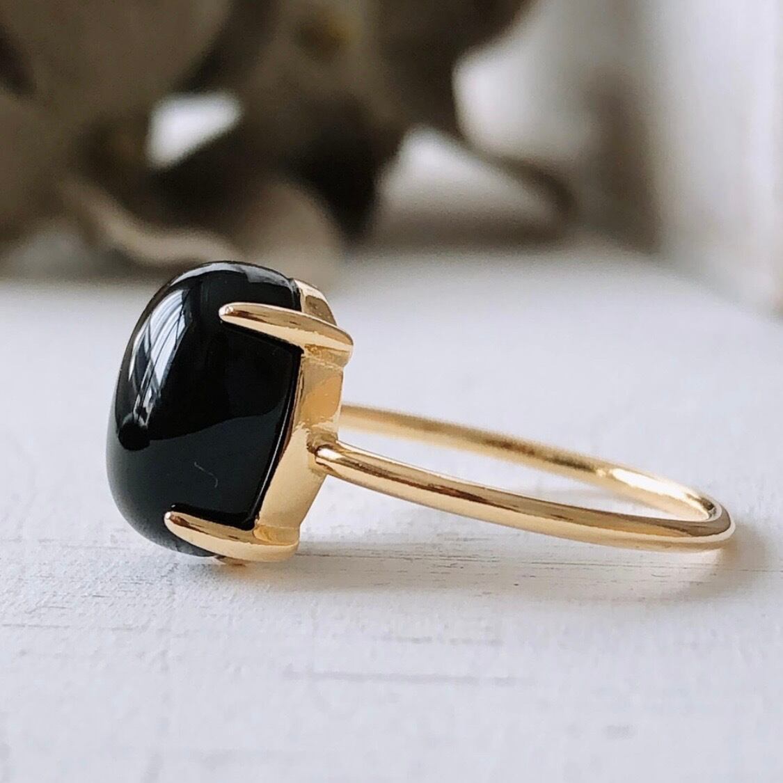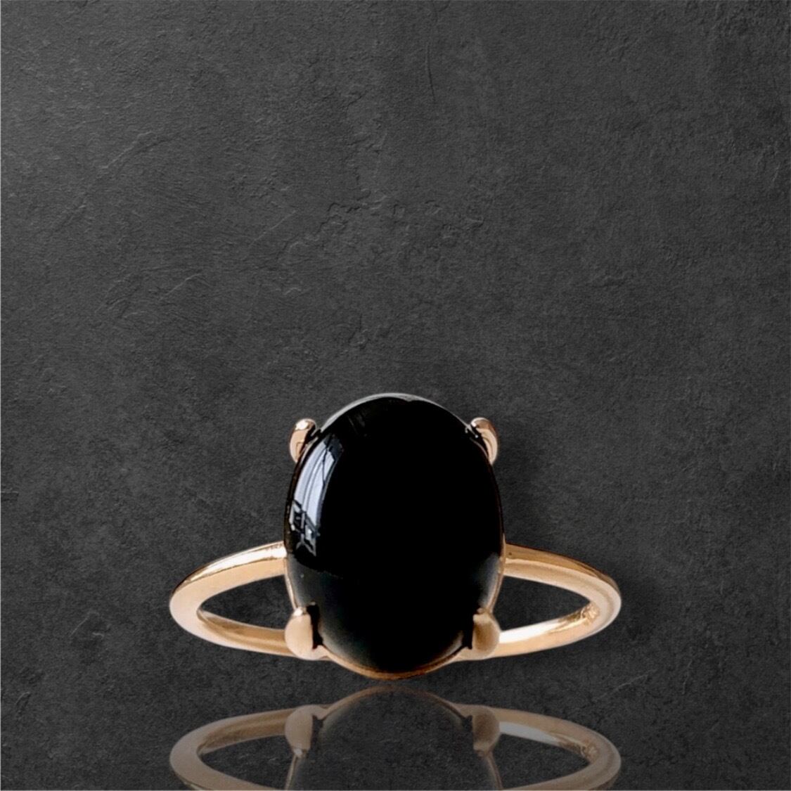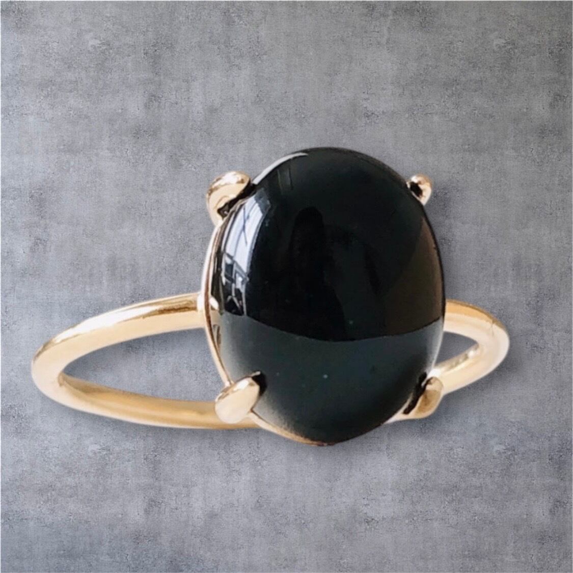 天然石ブラックオニキスのsilver925製ゴールドリング