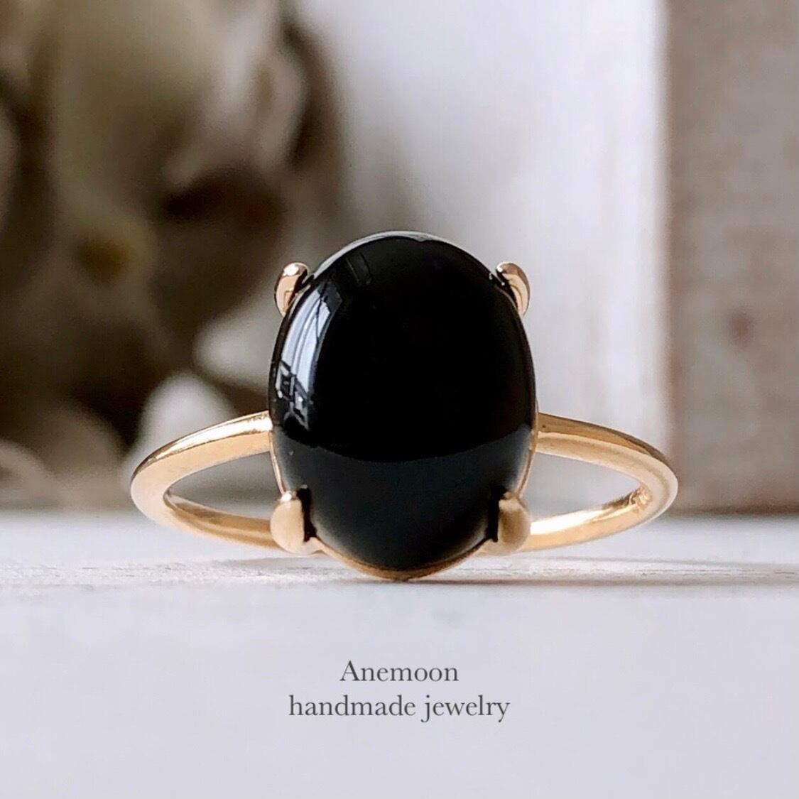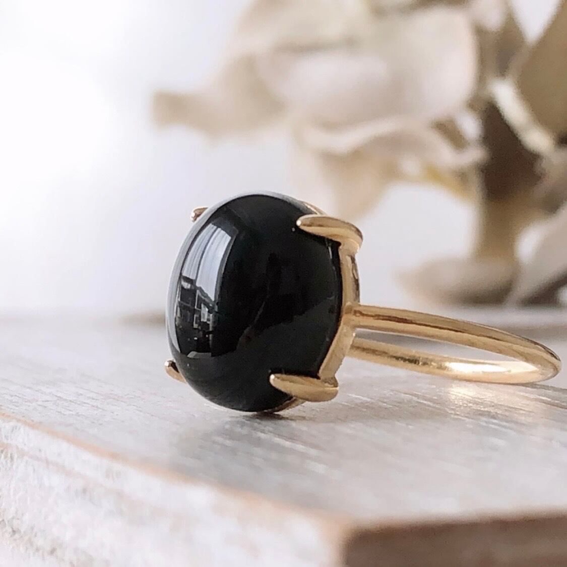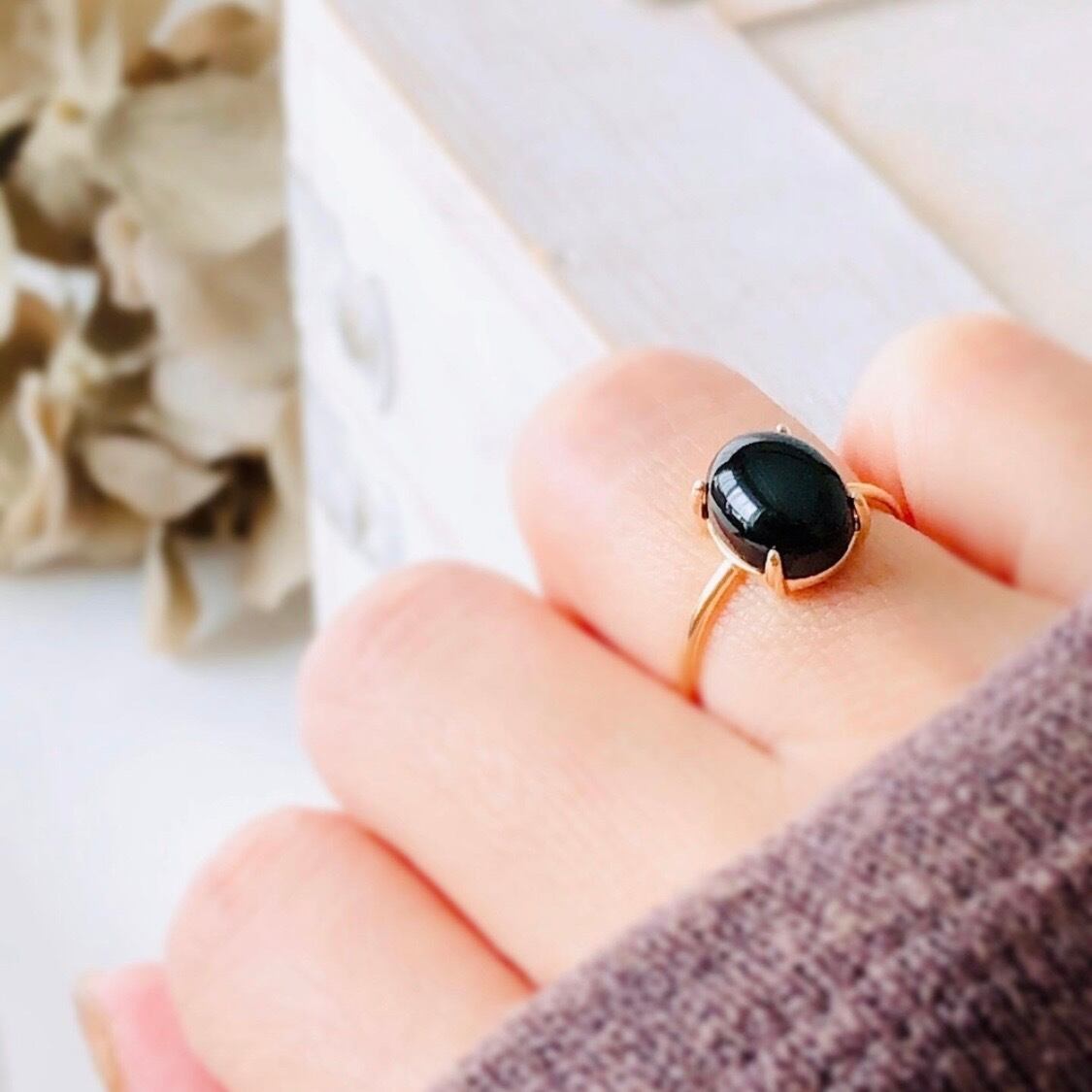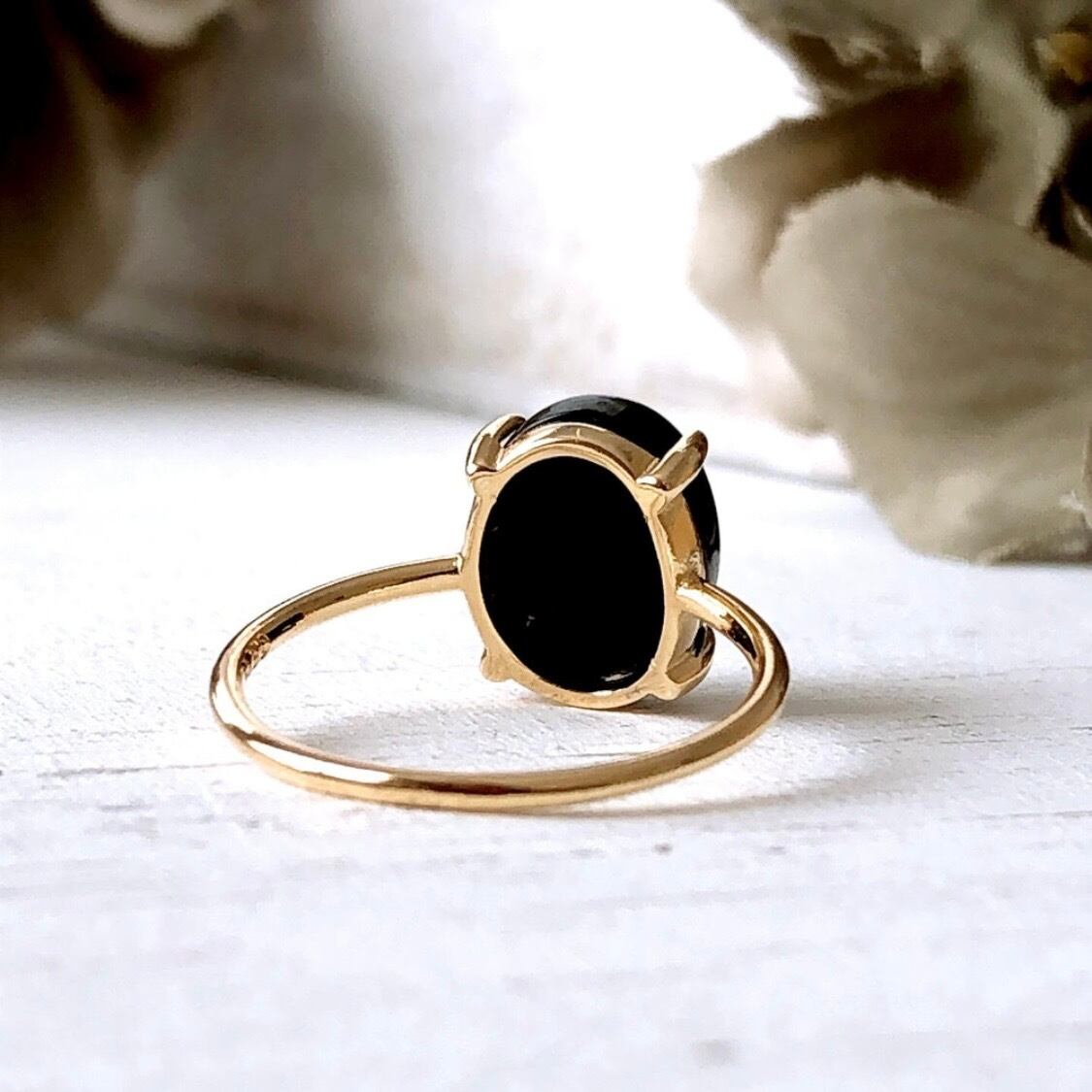 天然石ブラックオニキスのsilver925製ゴールドリング