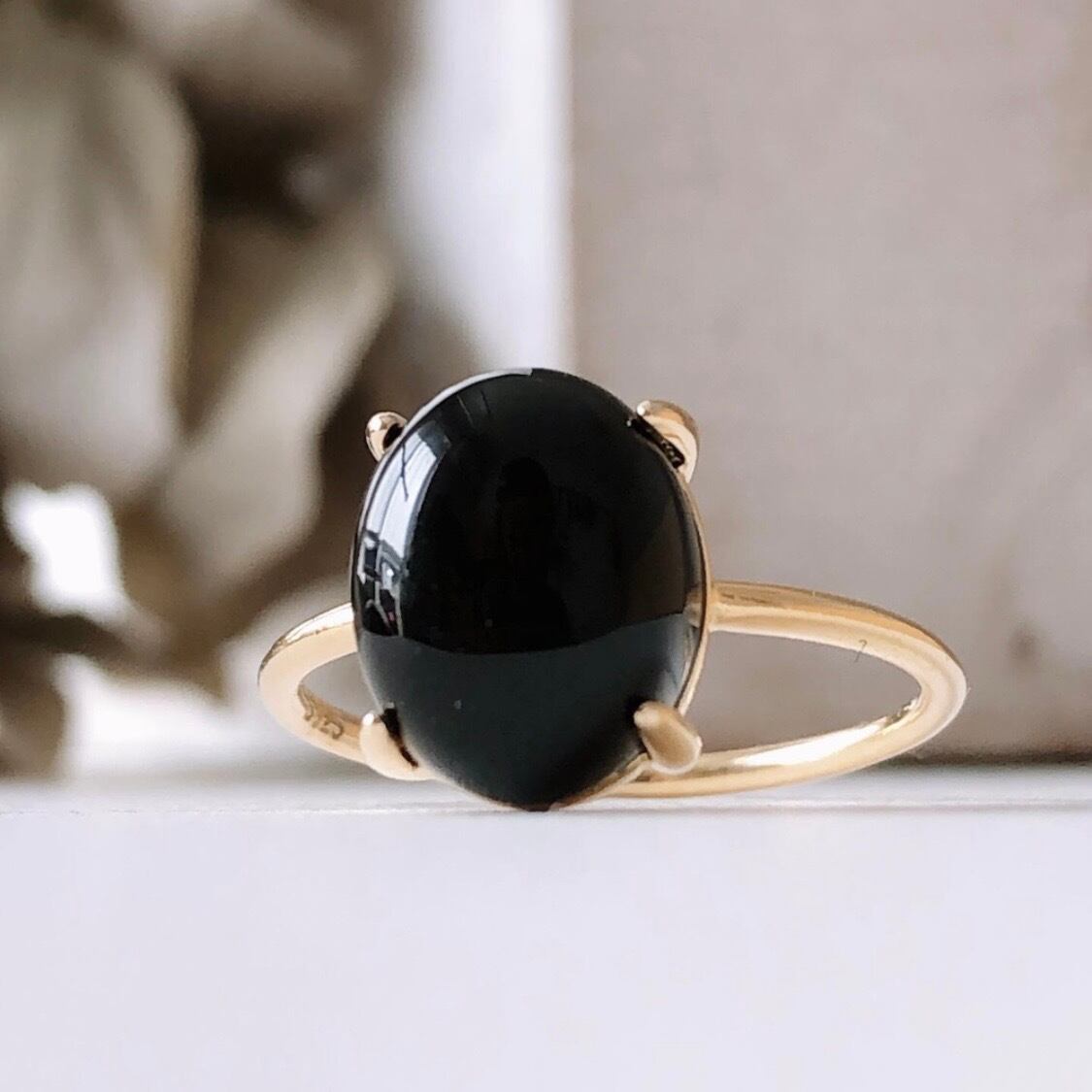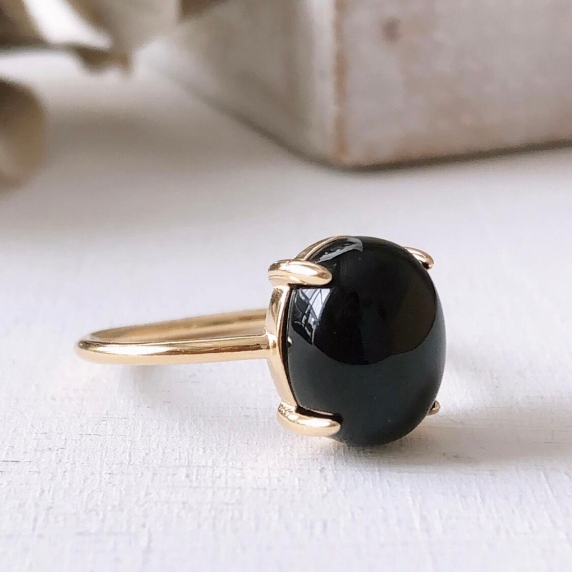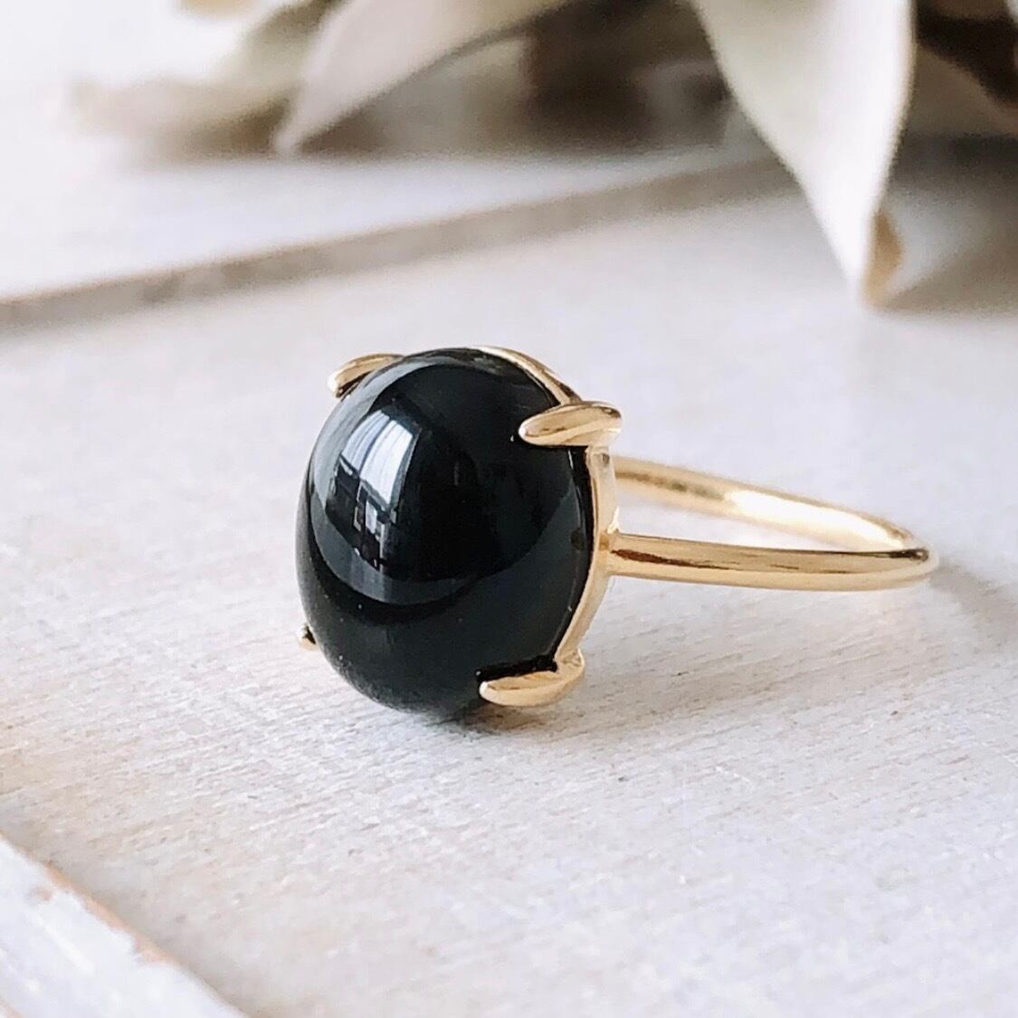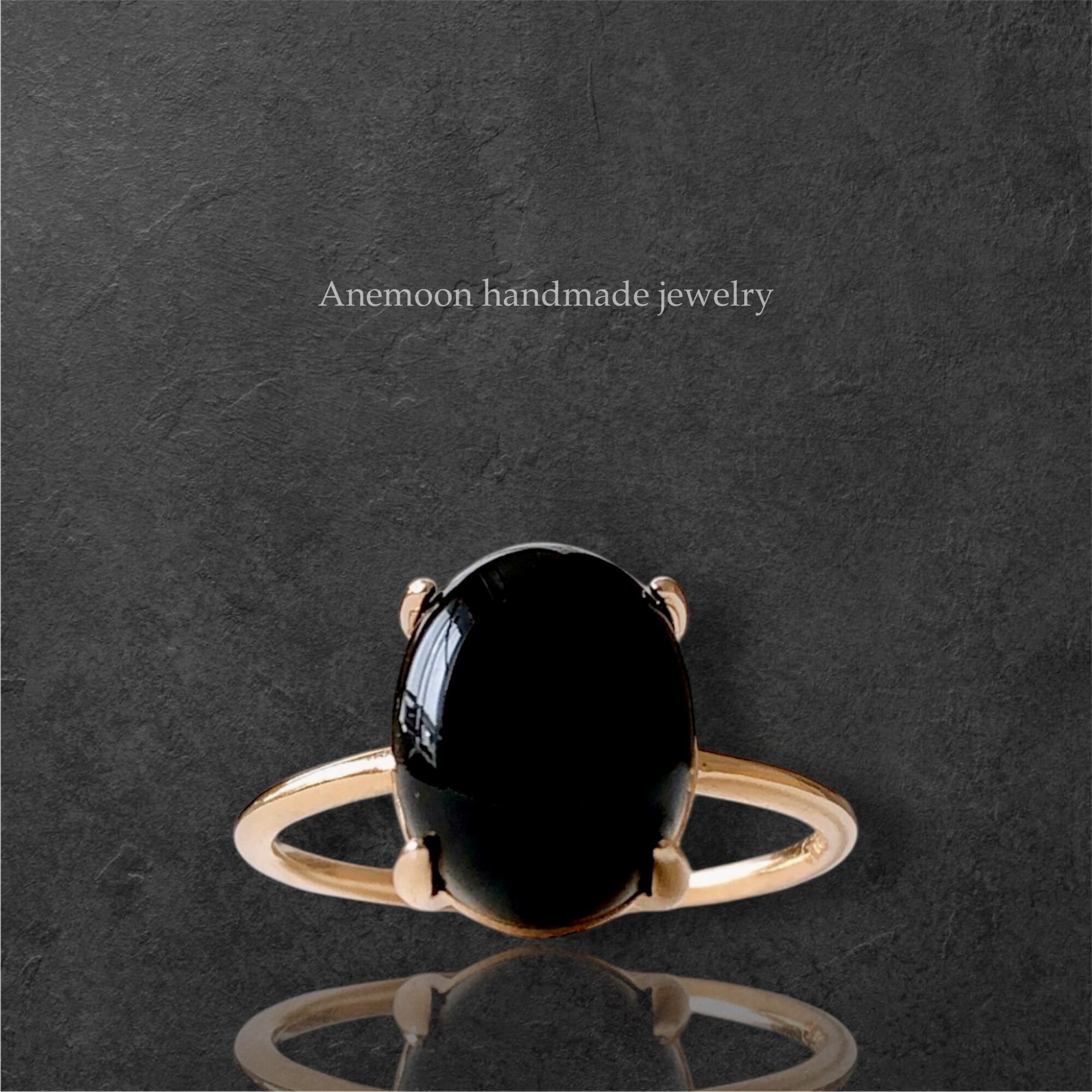 天然石ブラックオニキスのsilver925製ゴールドリング