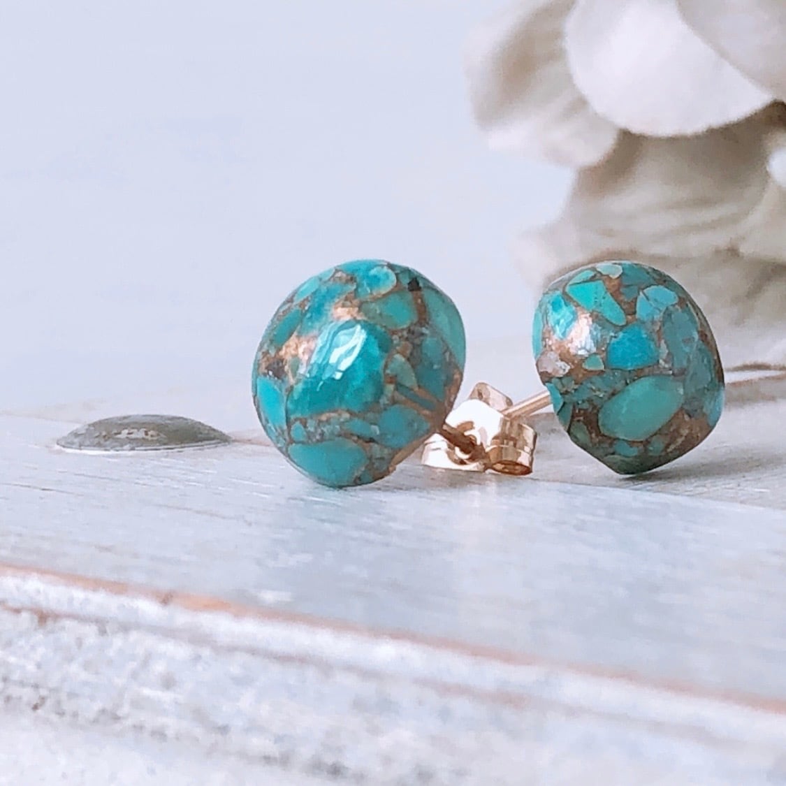 鮮やかなブルーが美しい、コッパーターコイズのピアス/イヤリング