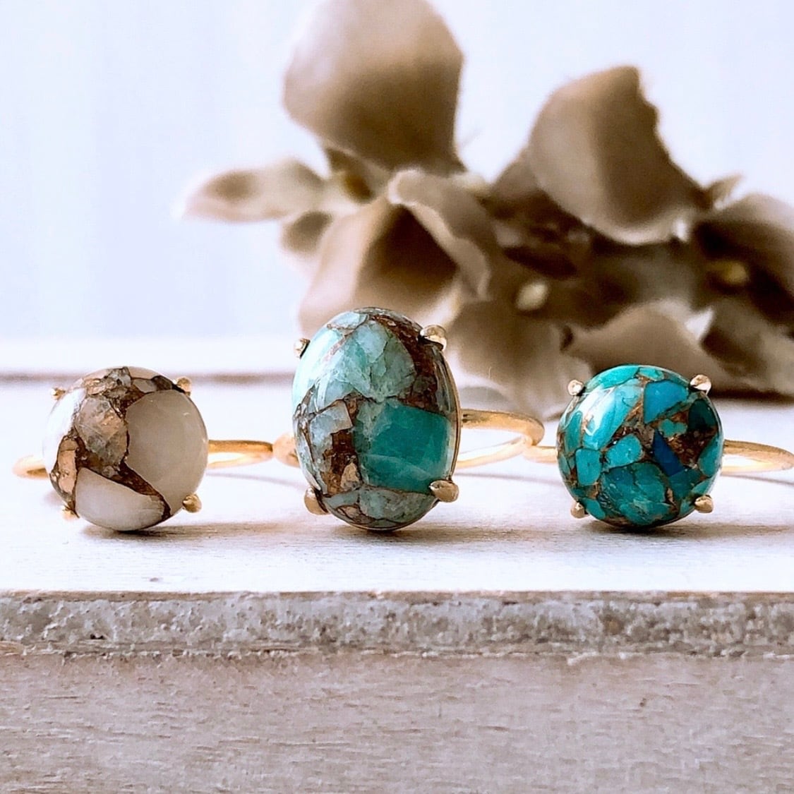 ターコイズにコッパー(銅)が溶け込むことで生まれる独特の模様は、ひとつとして同じものがなく、自然が描いたような一点ものの表情をお楽しみいただけます。