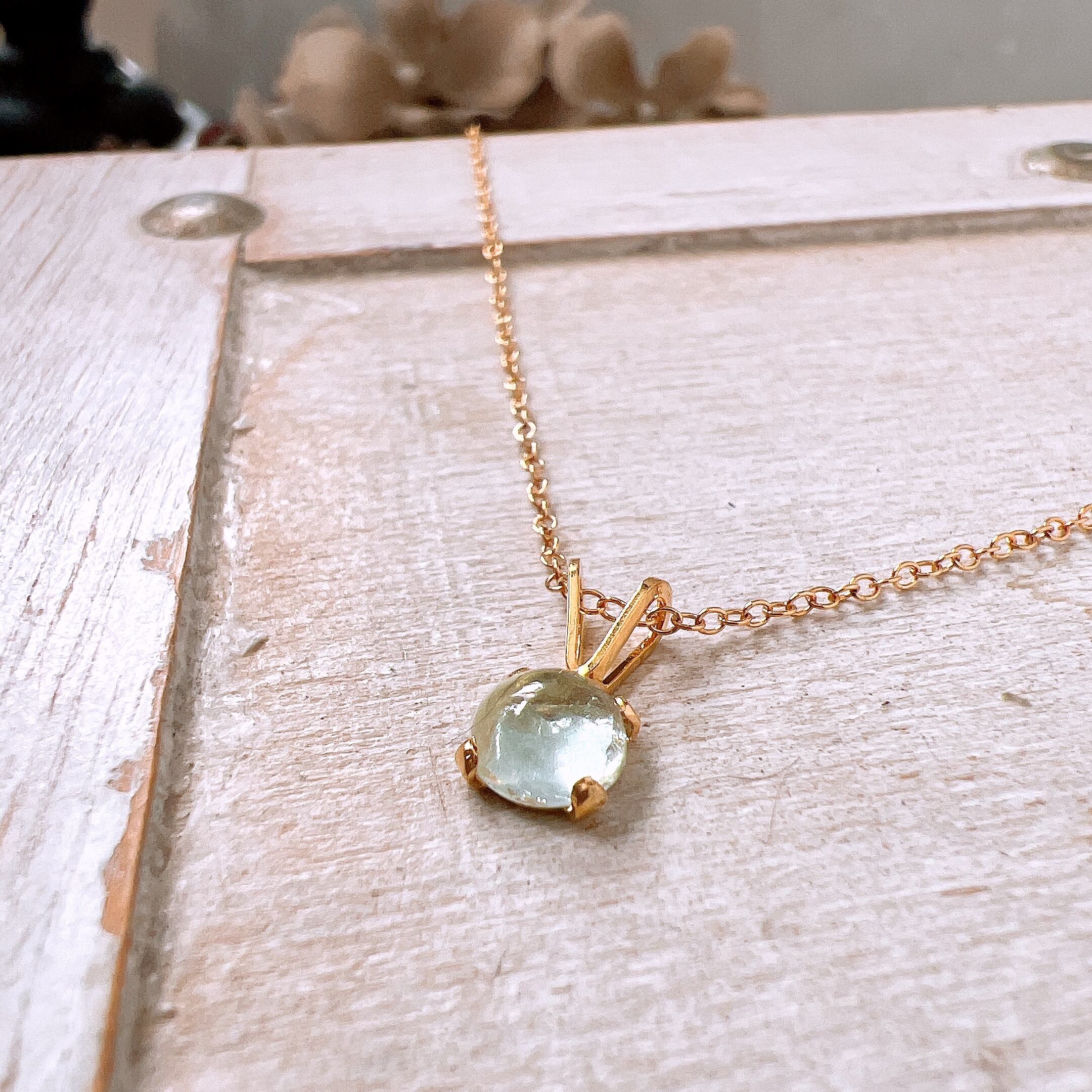 チェーンとペンダント枠には14kgf(ゴールドフィルド)素材を使用。