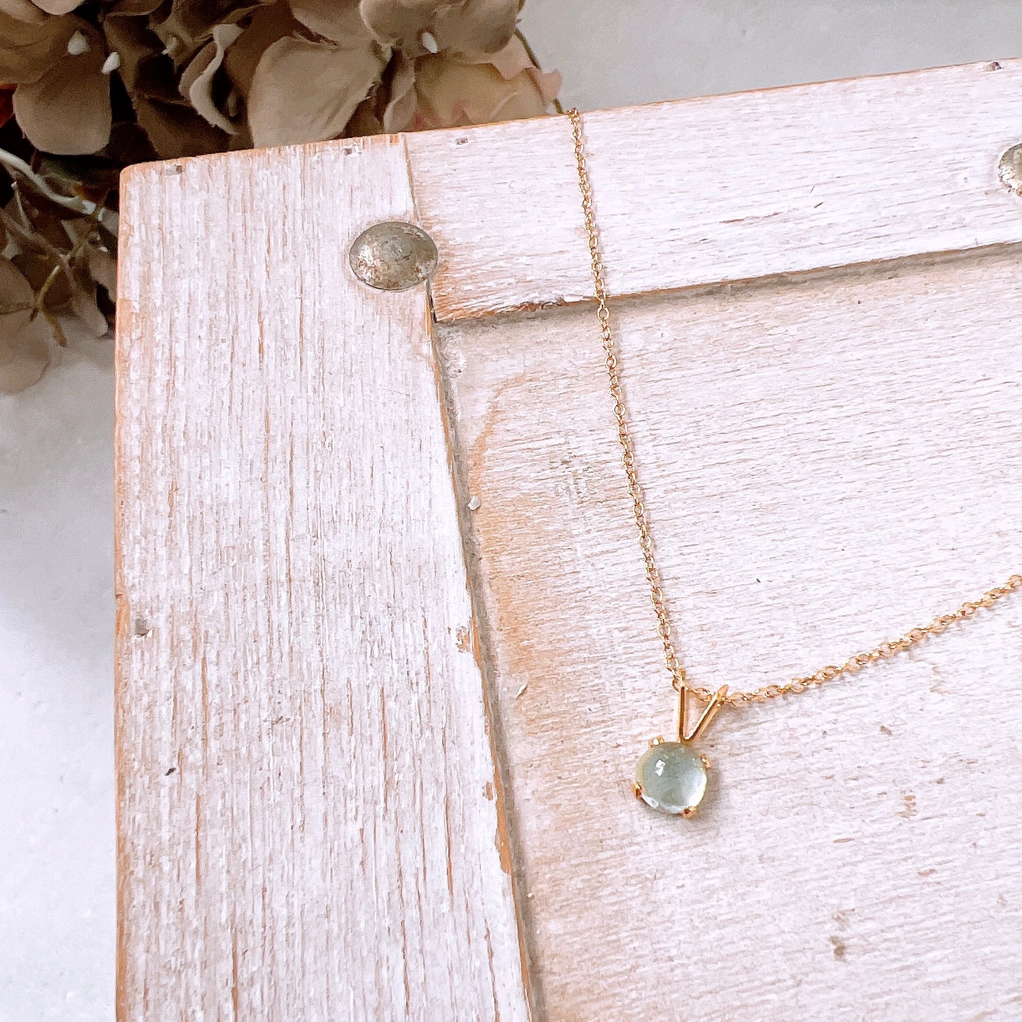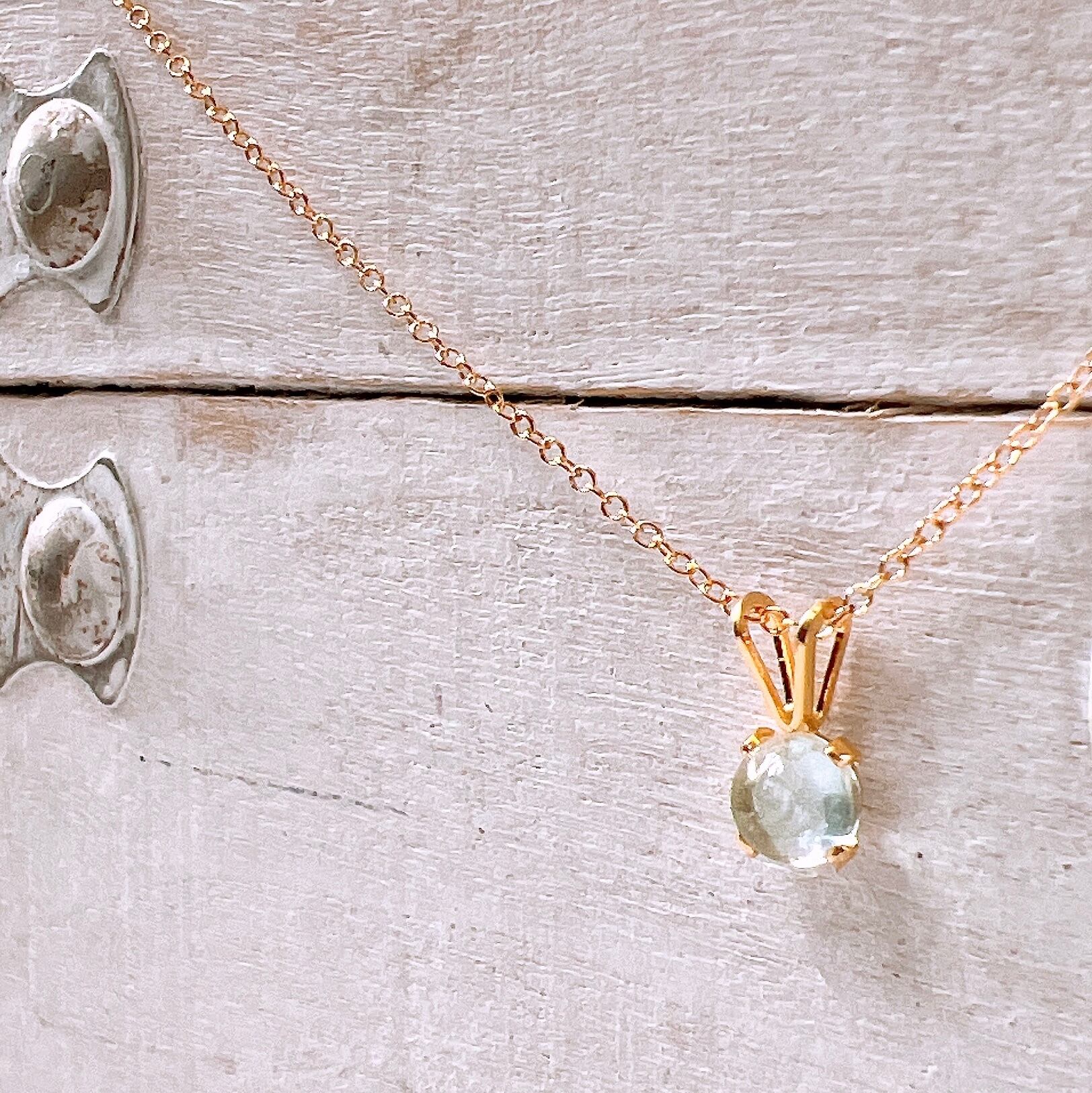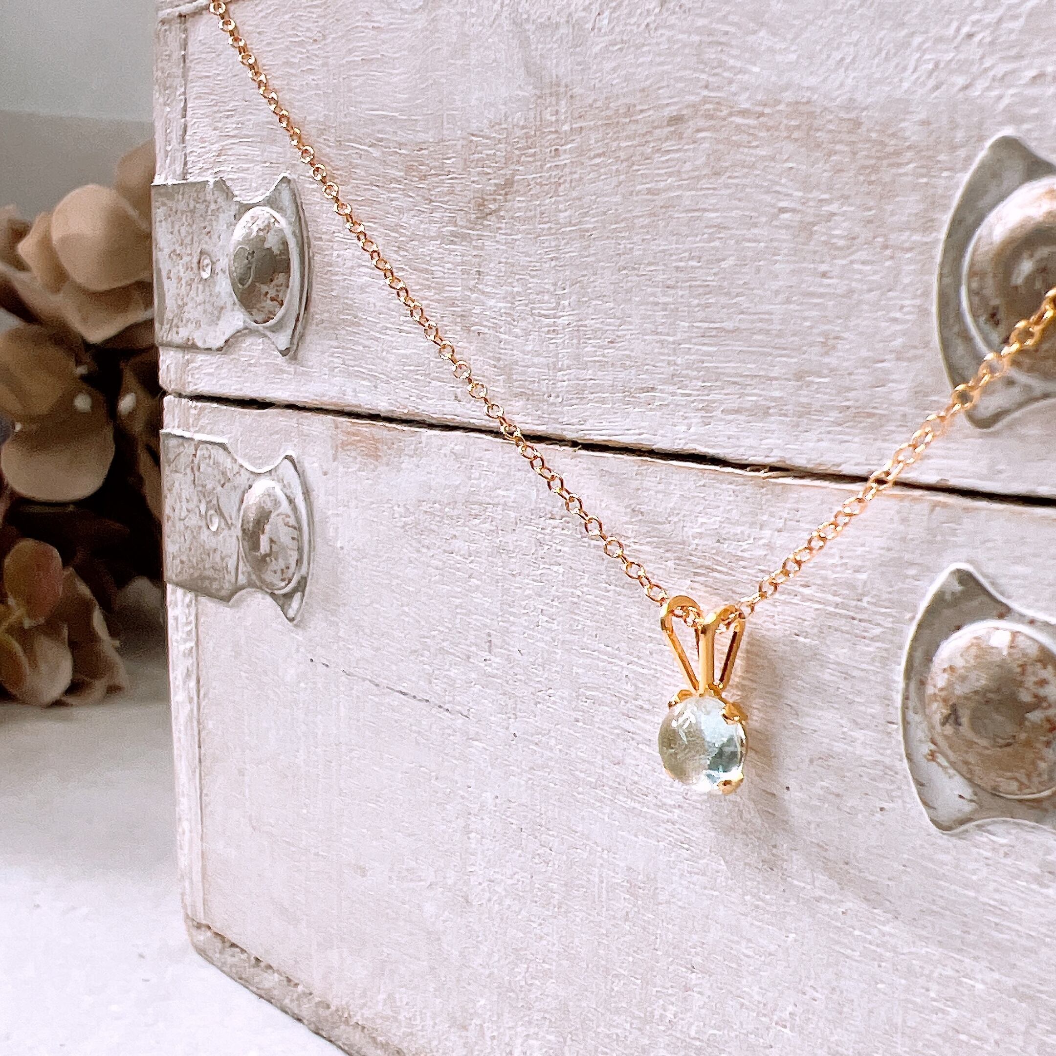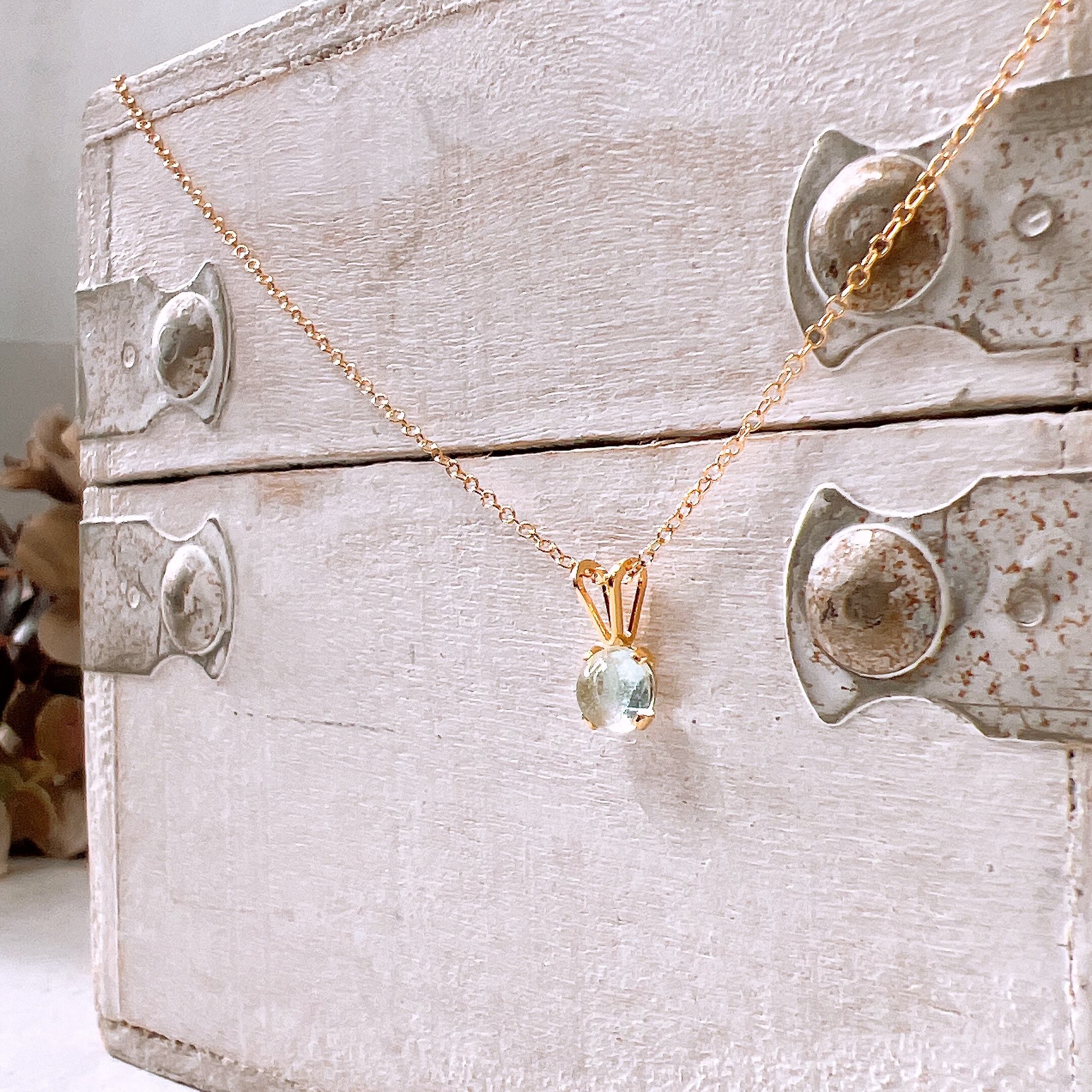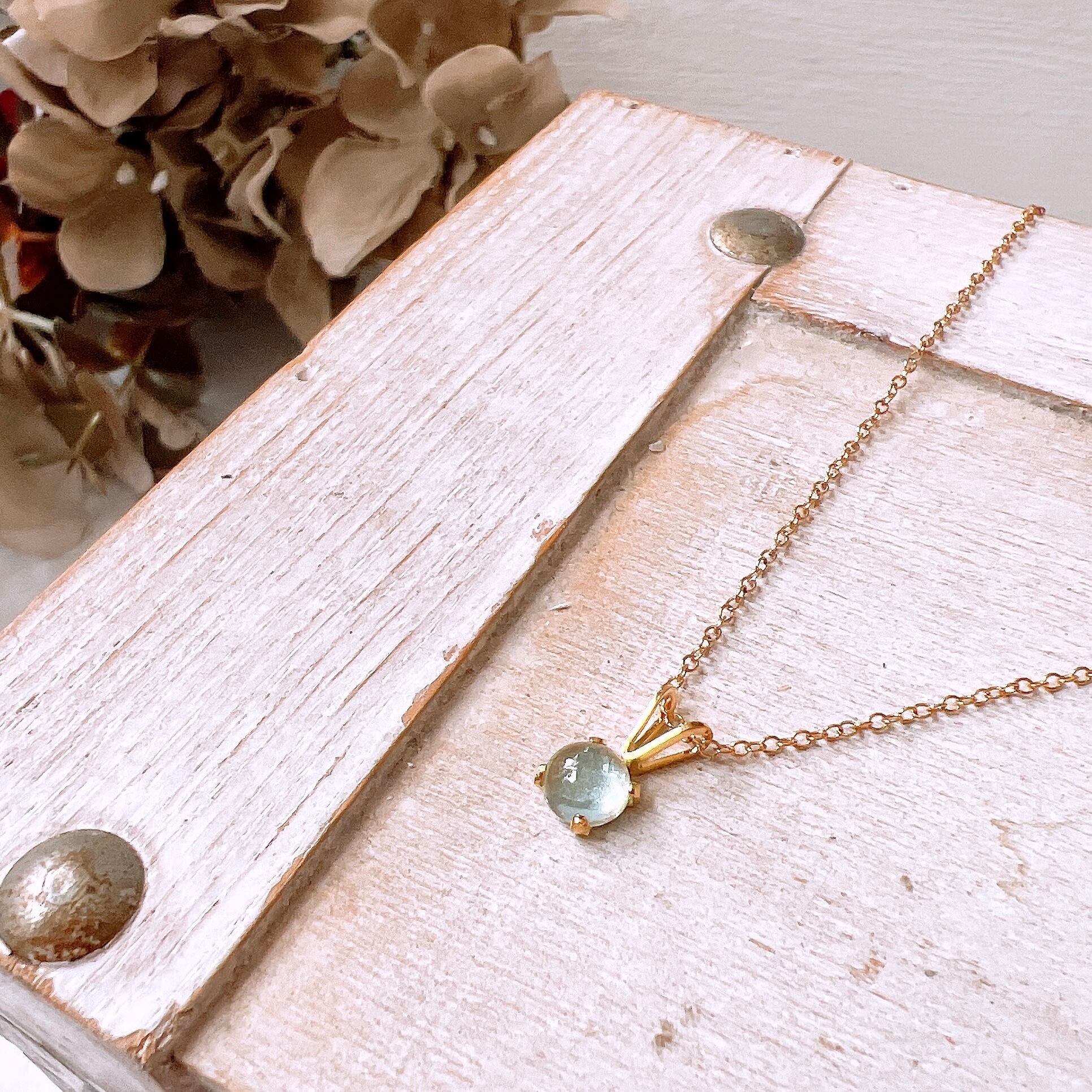 透明感あふれる淡いブルーが美しい、天然石アクアマリンのシンプルな一粒ネックレスです。