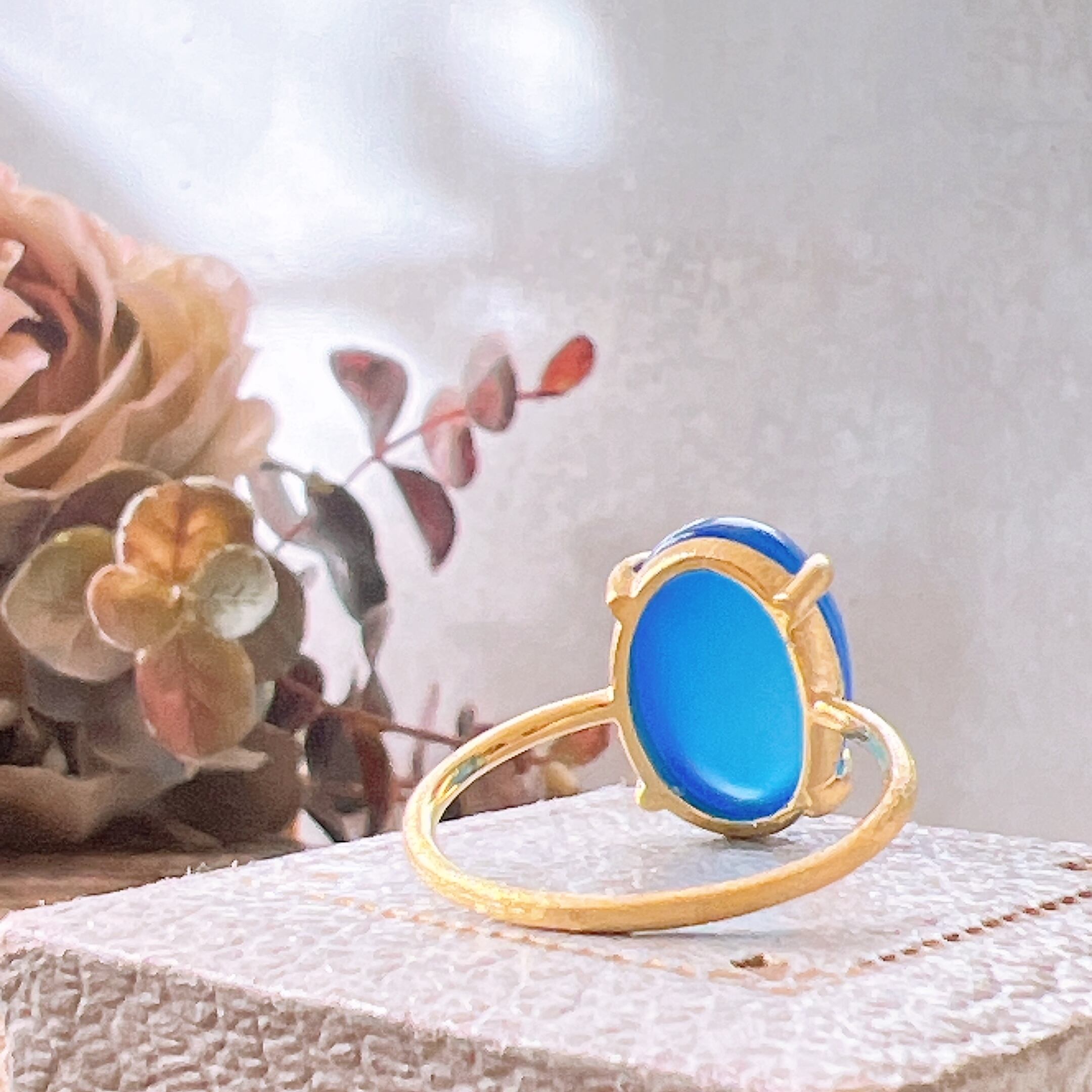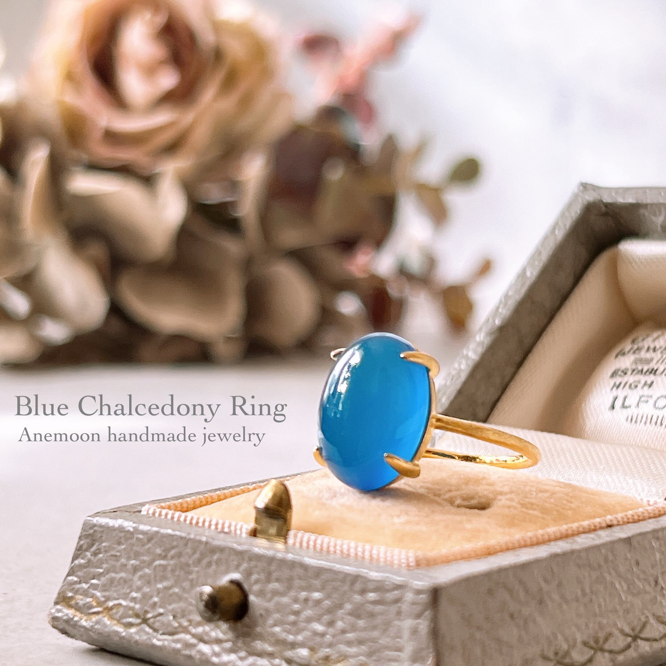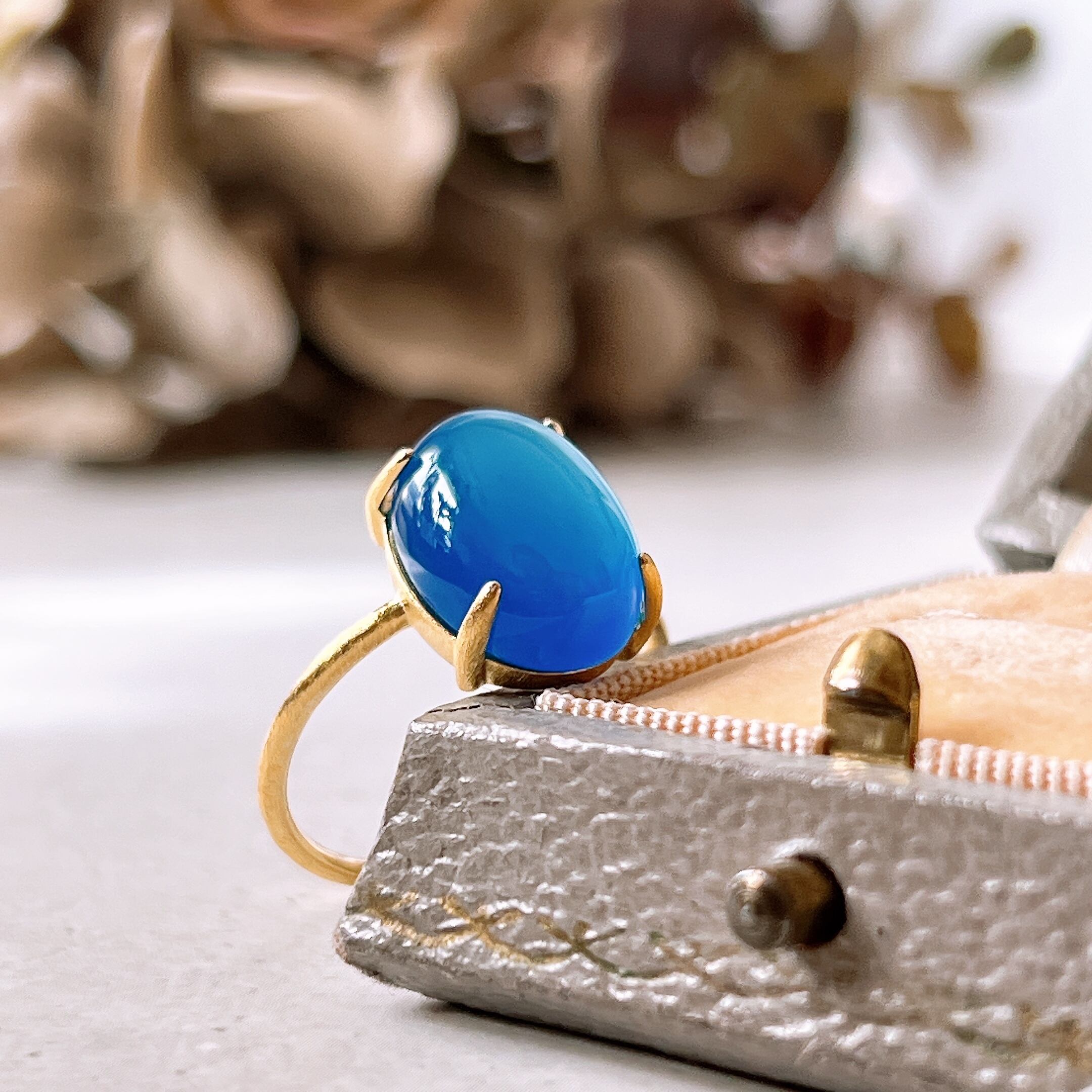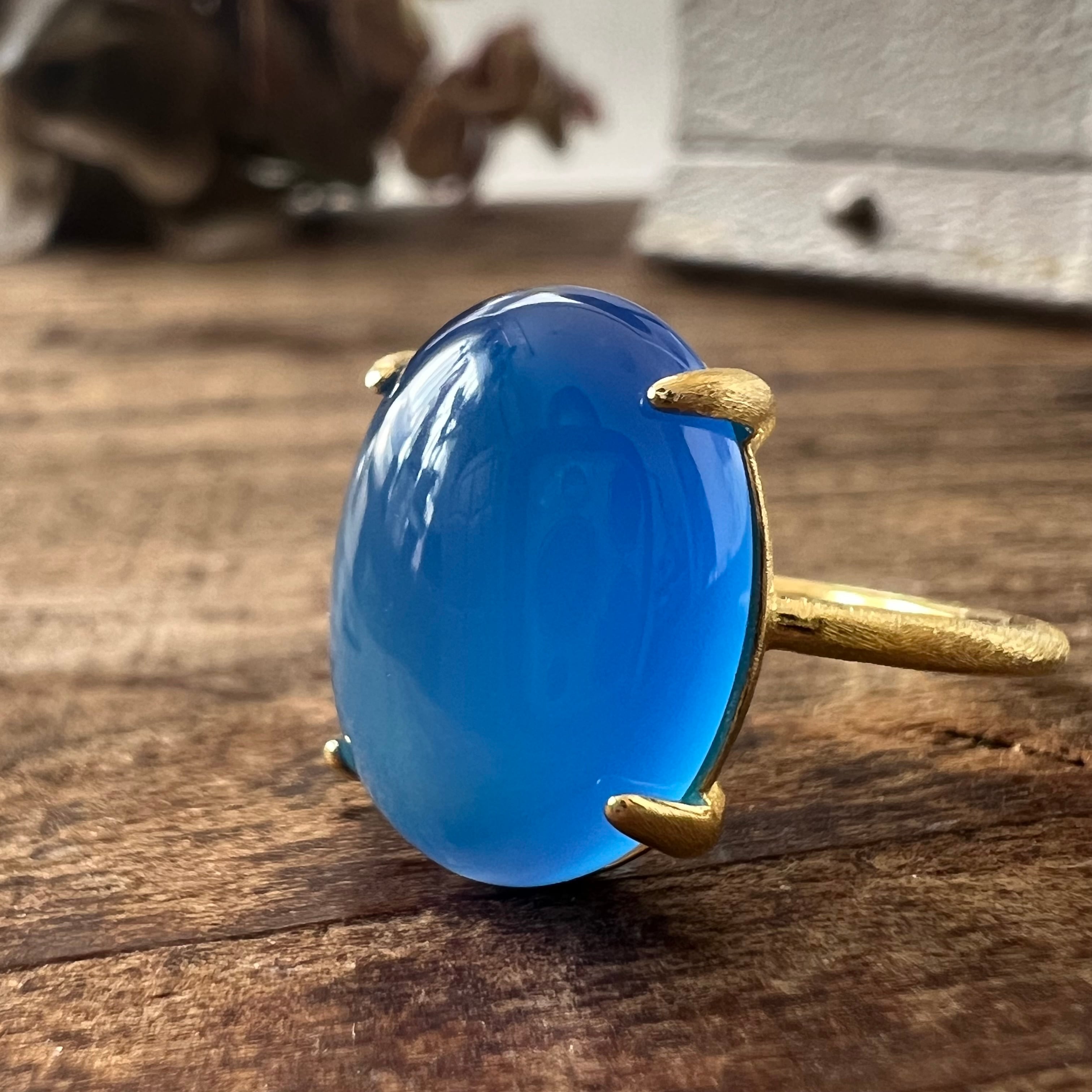 上質なブルーカルセドニーを厳選し、艶とフォルムにこだわって仕立てた天然石リングです。