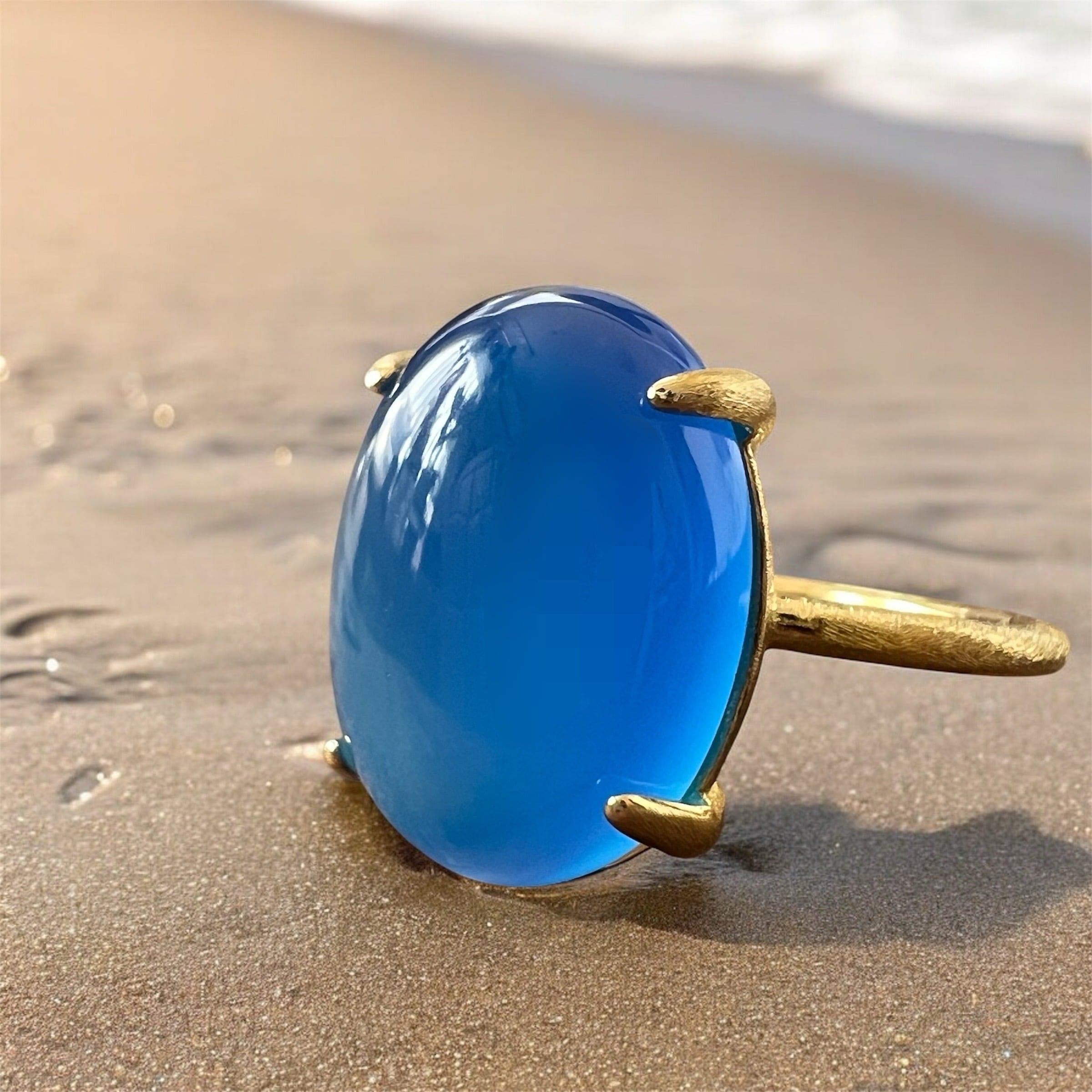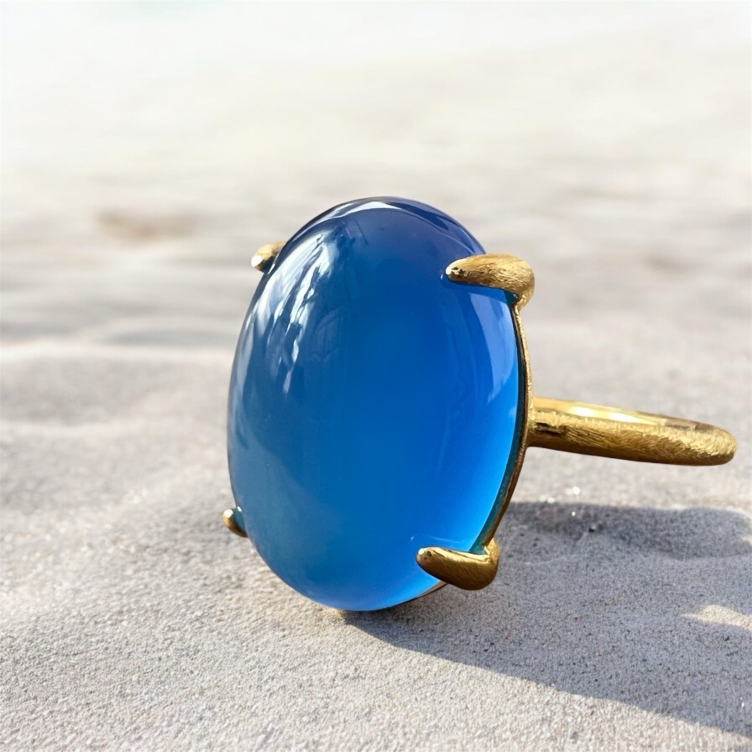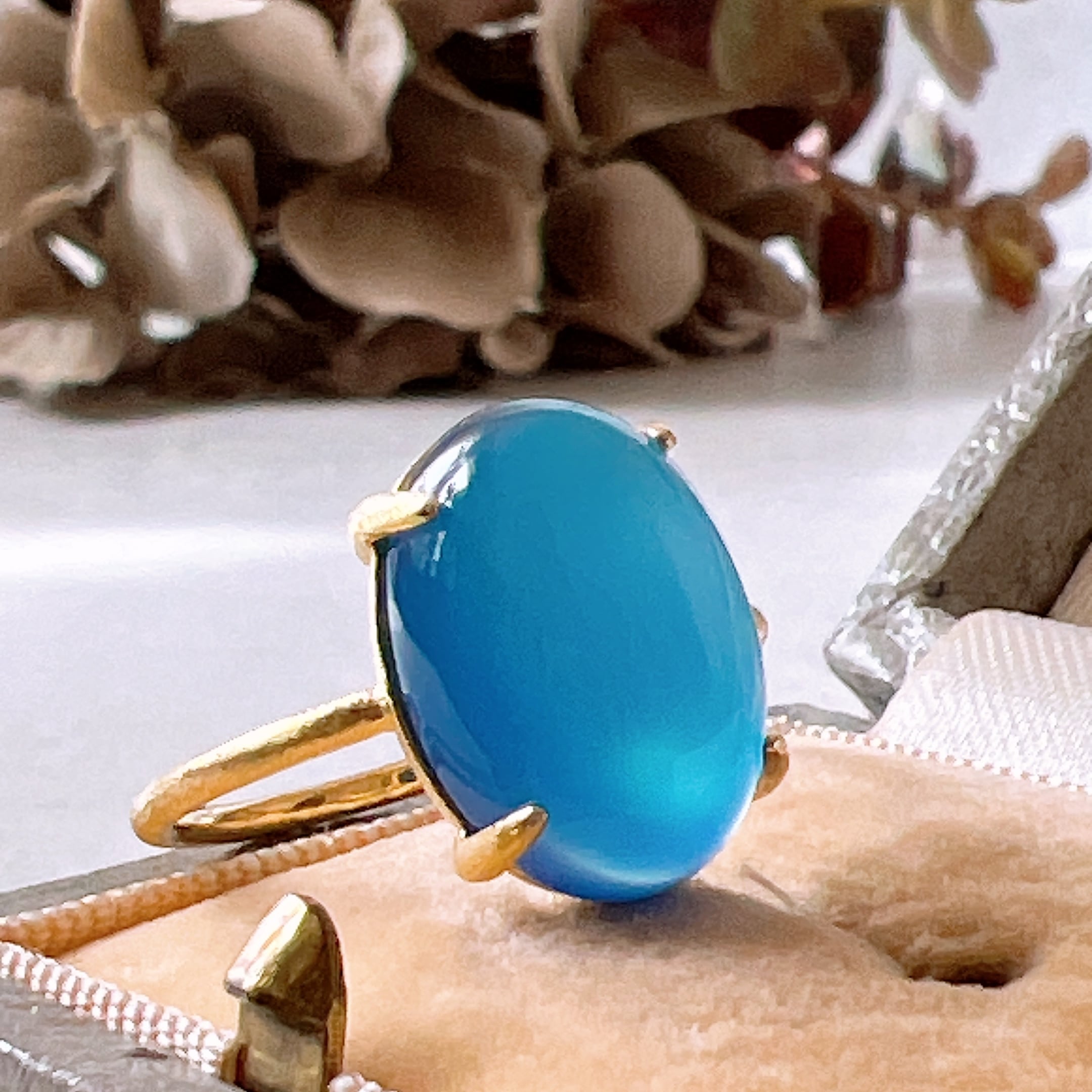 上質なブルーカルセドニーを厳選し、艶とフォルムにこだわって仕立てた天然石リングです。