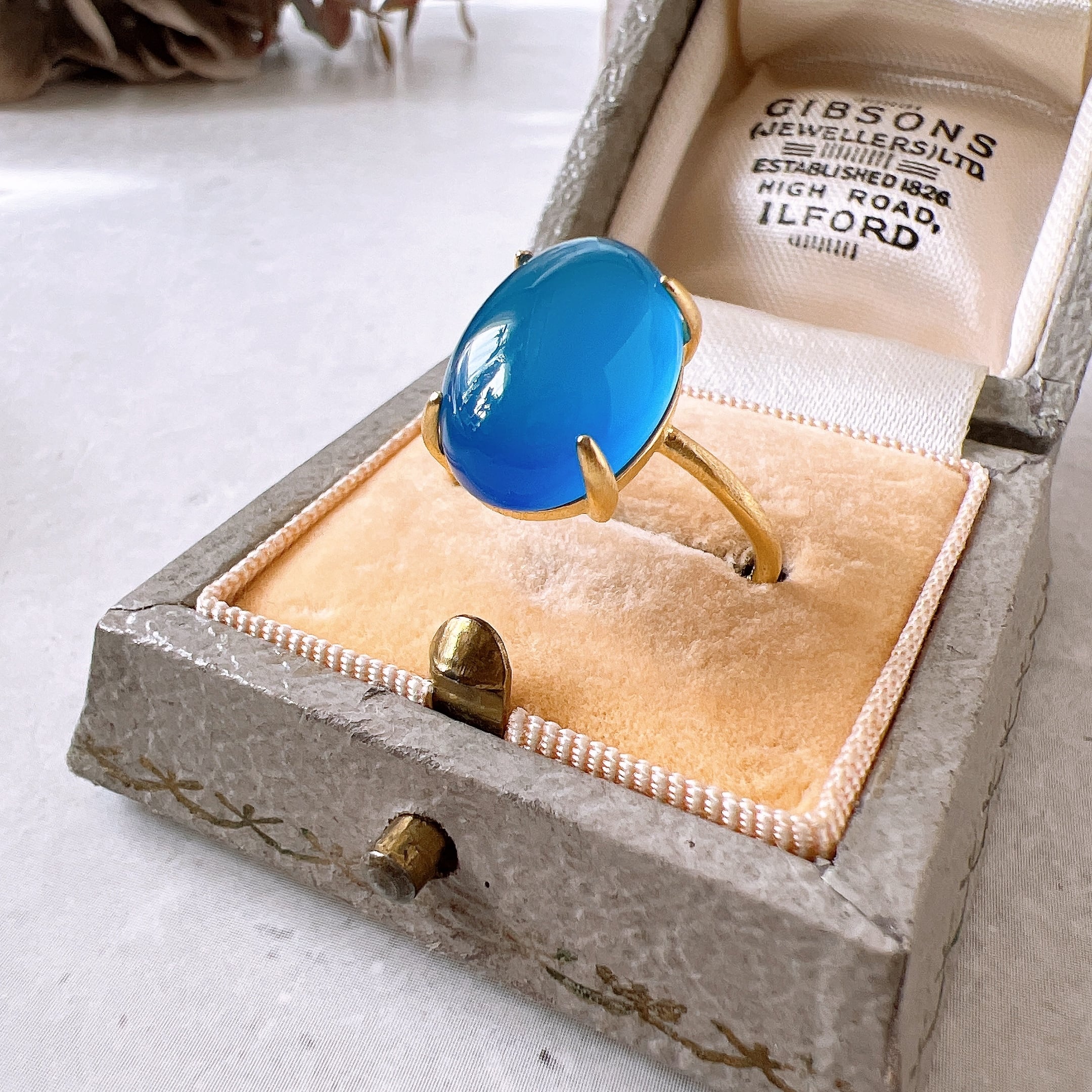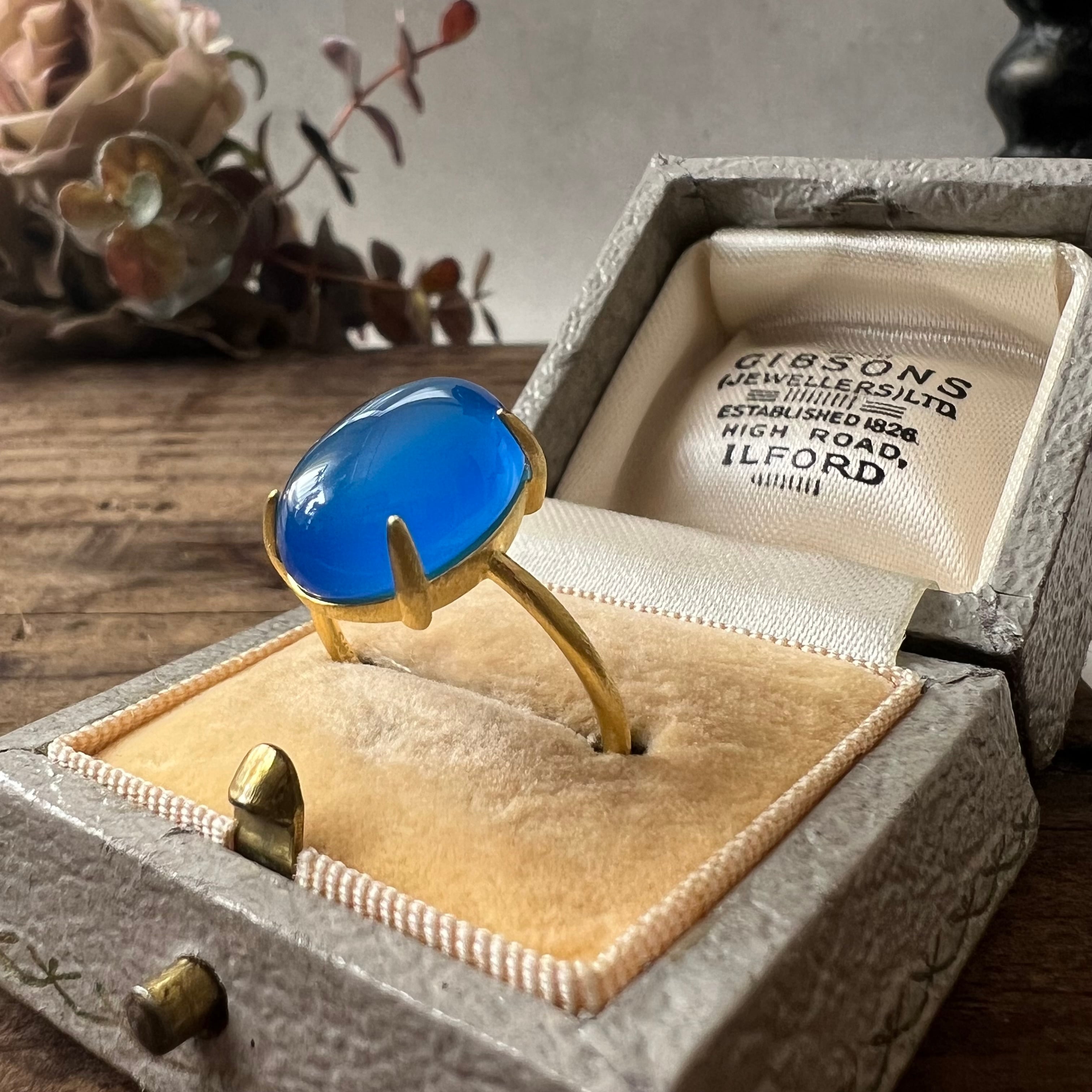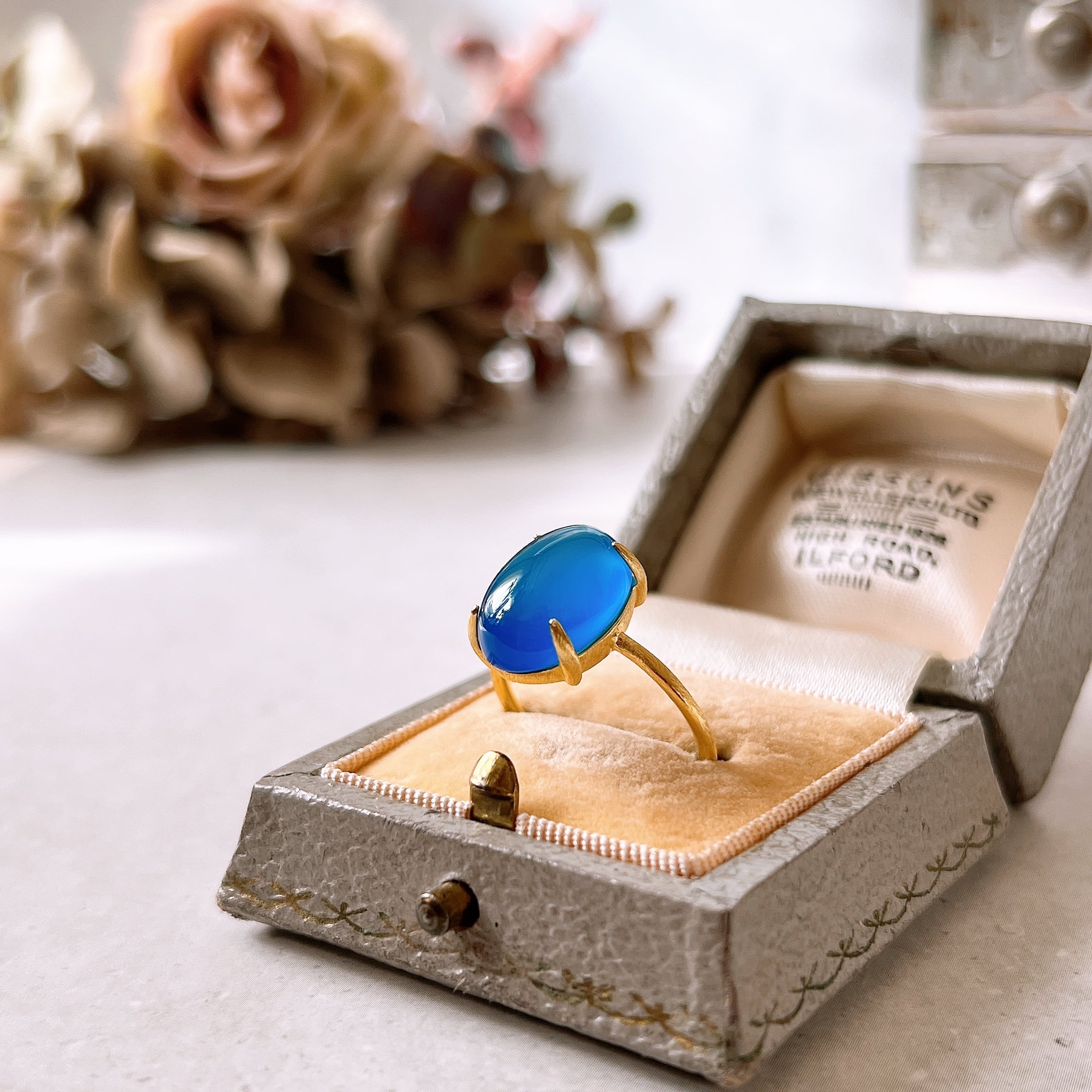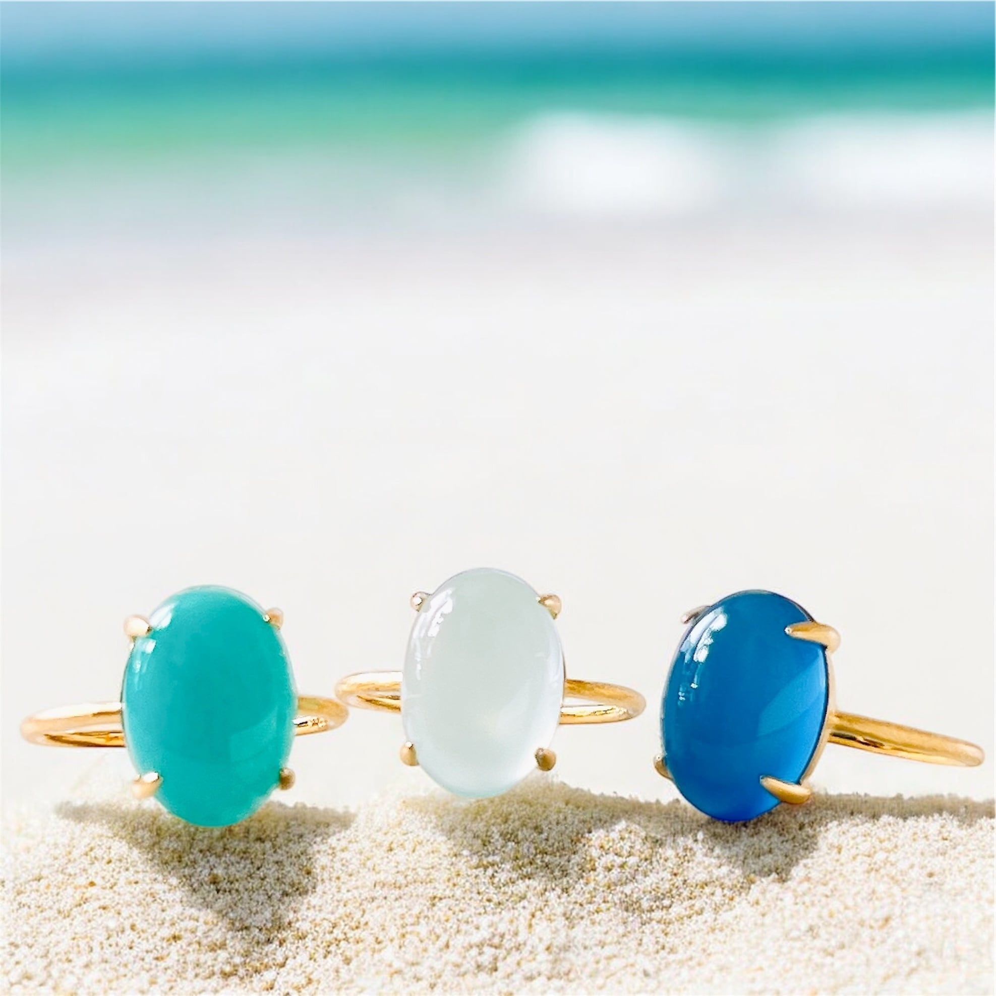 上質なブルーカルセドニーを厳選し、艶とフォルムにこだわって仕立てた天然石リングです。