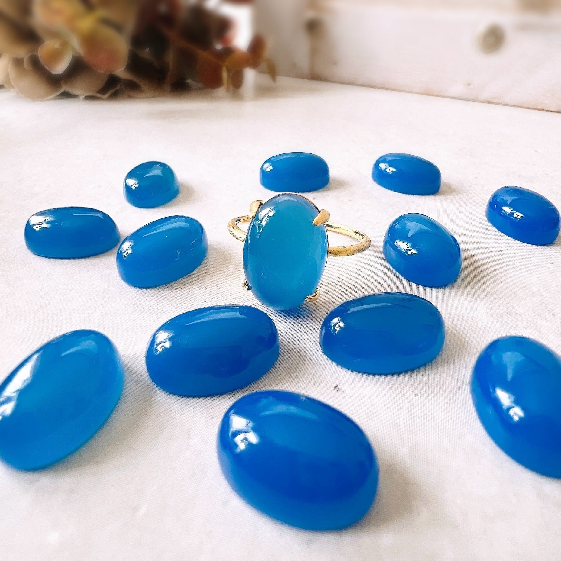 数あるカラーバリエーションの中から、うっすらと透明感を感じられる上質なブルーカルセドニーを厳選しました。
