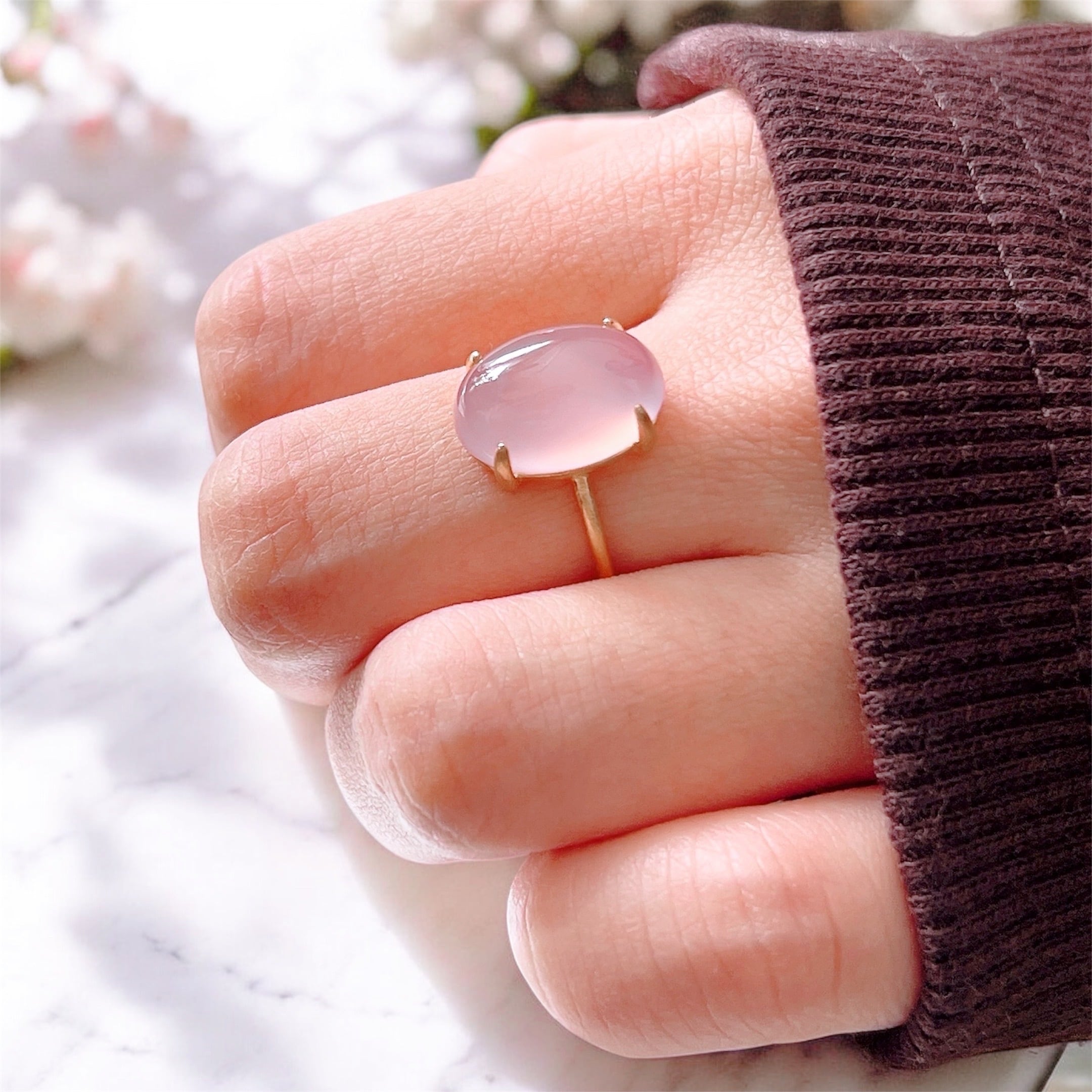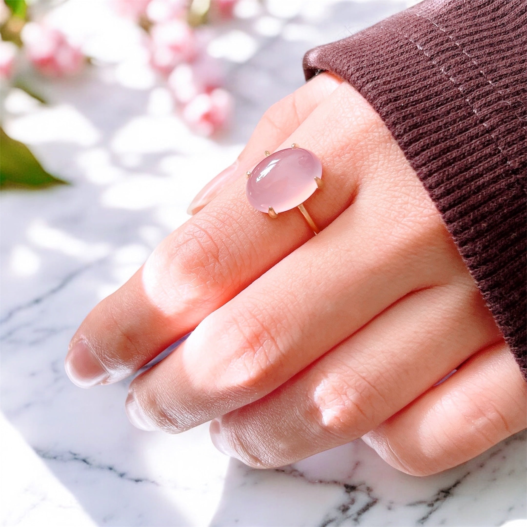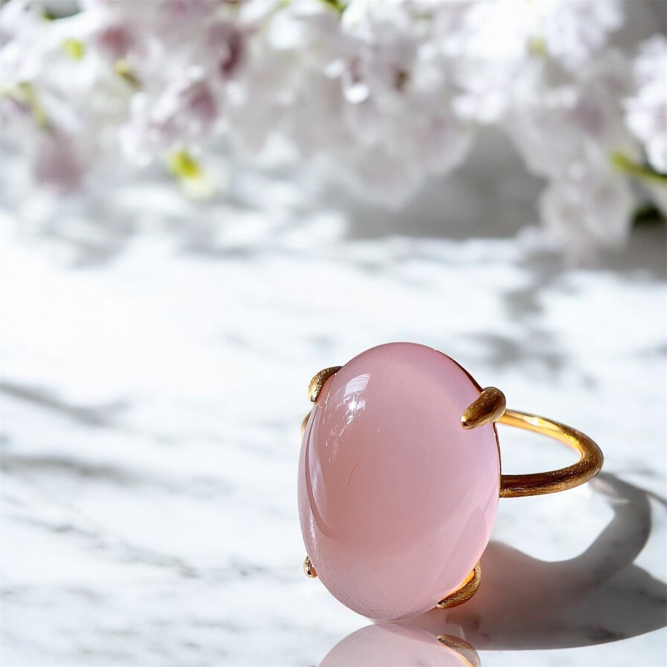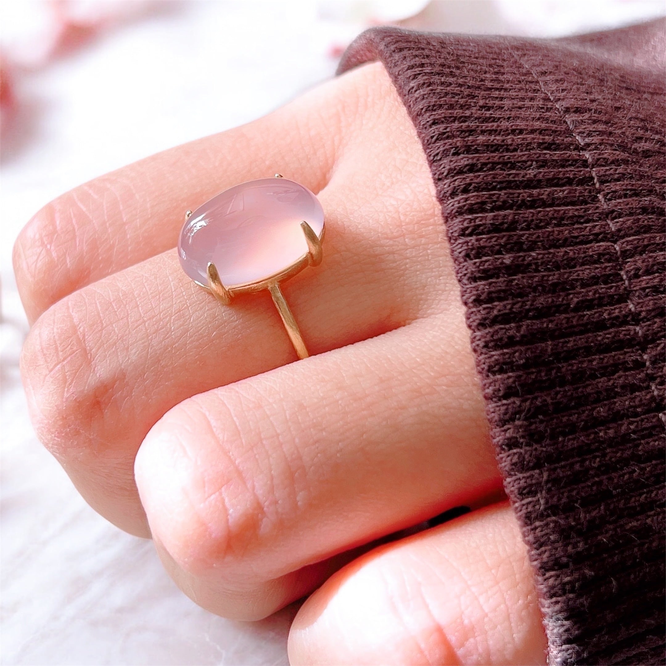 艶やかな透明感が美しいAAAランクのピンクパープルカルセドニーを使用した、上品で洗練された天然石リングです。