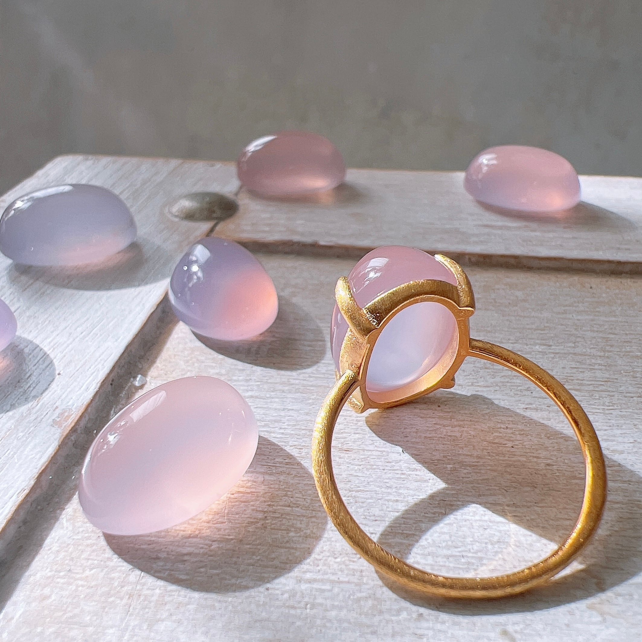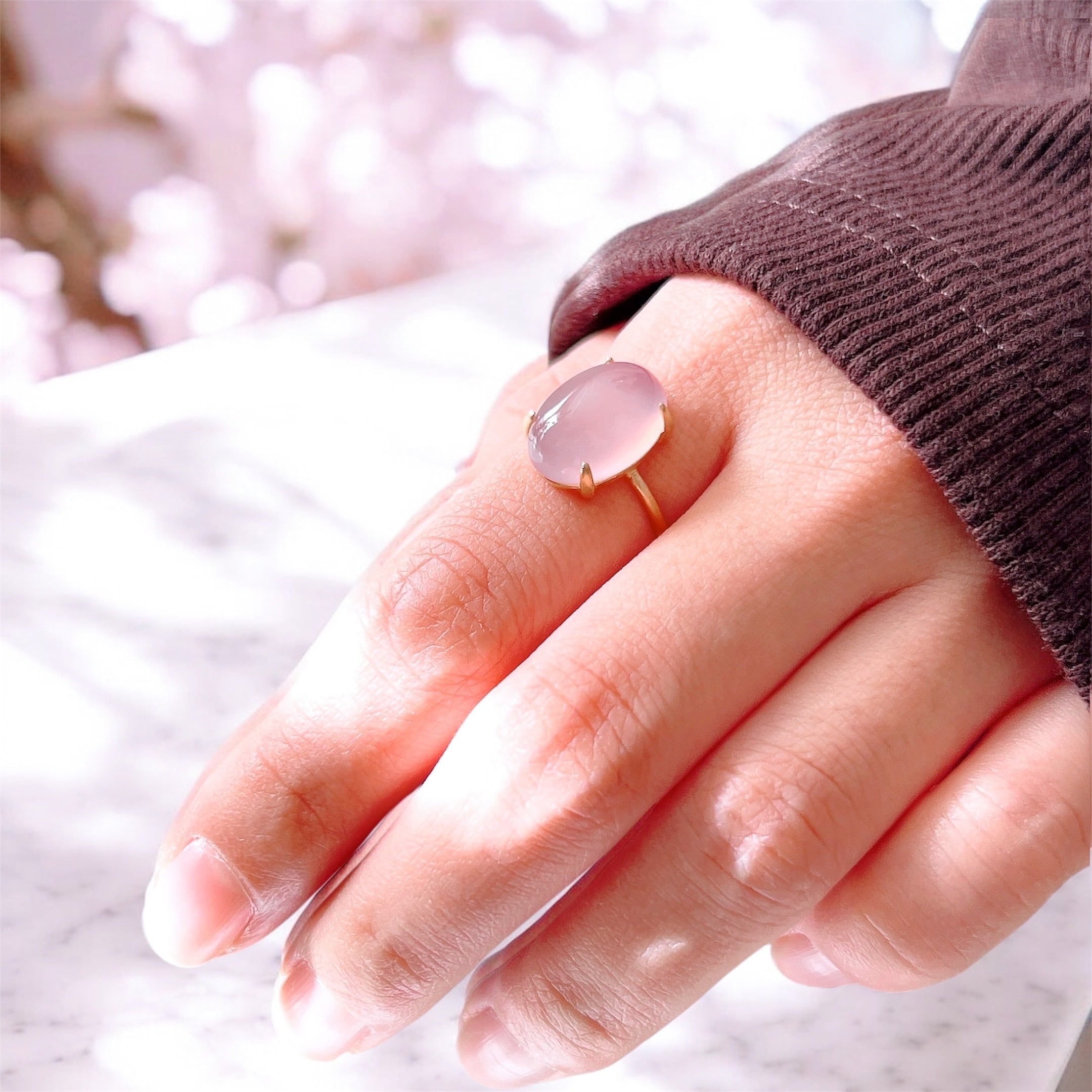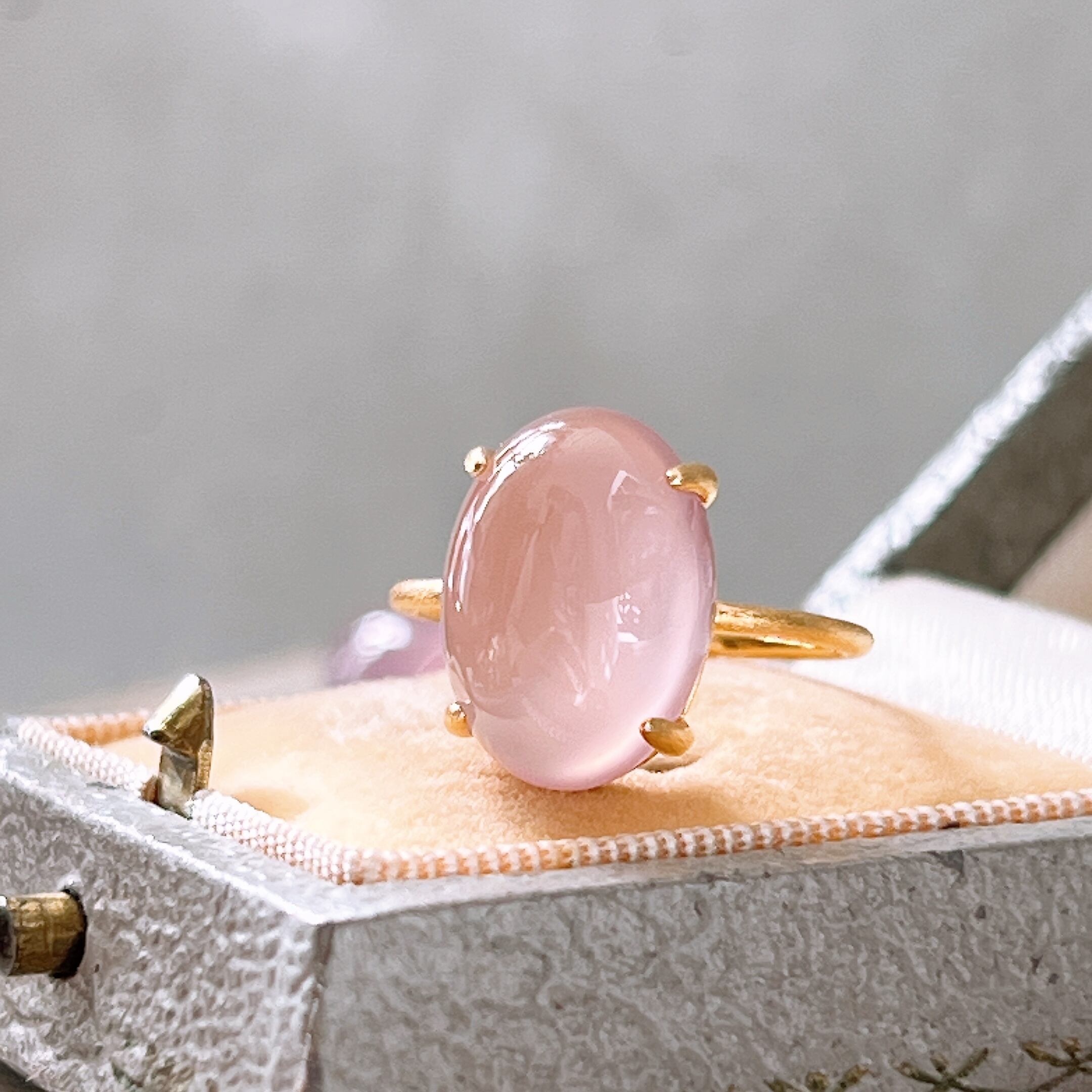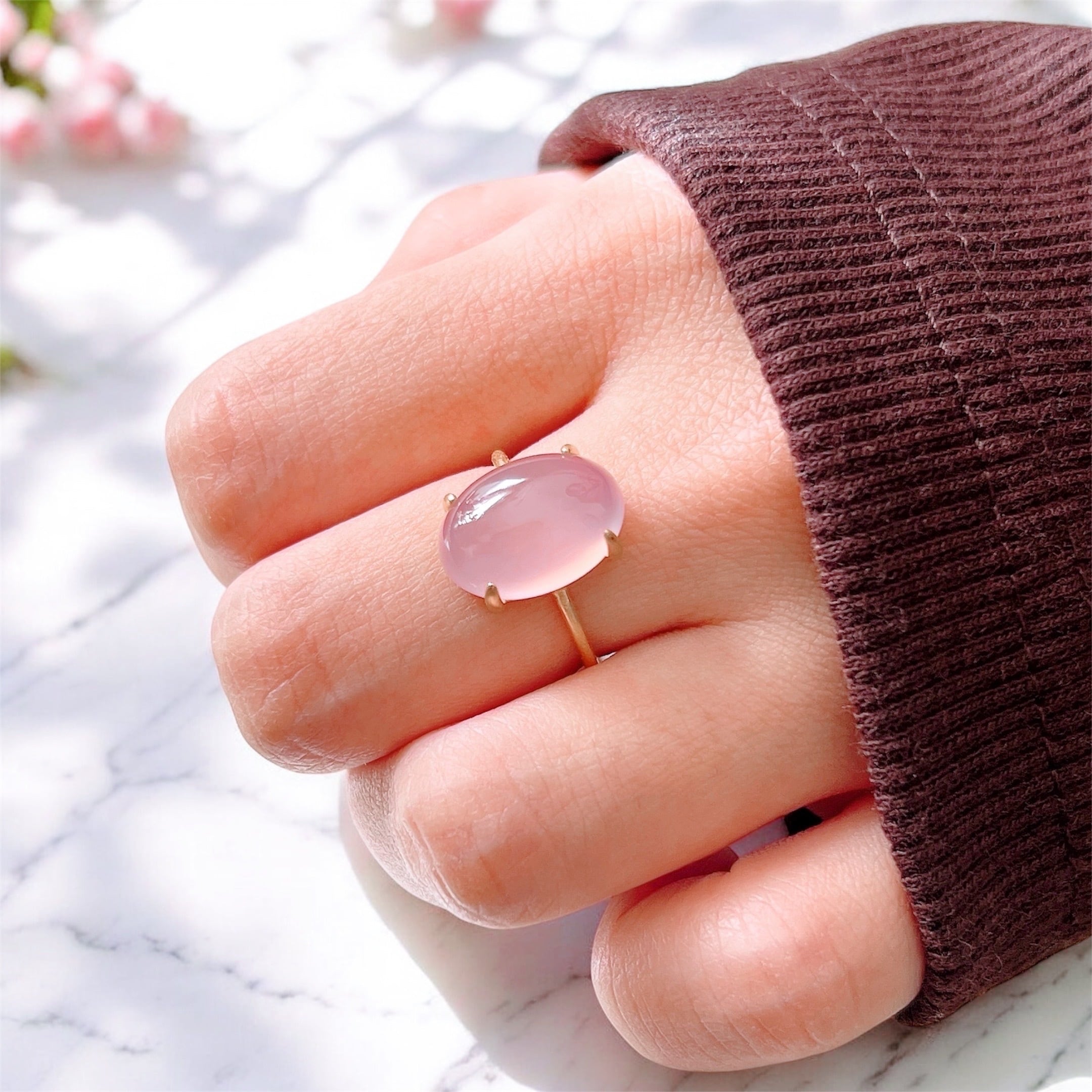 艶やかな透明感が美しいAAAランクのピンクパープルカルセドニーを使用した、上品で洗練された天然石リングです。