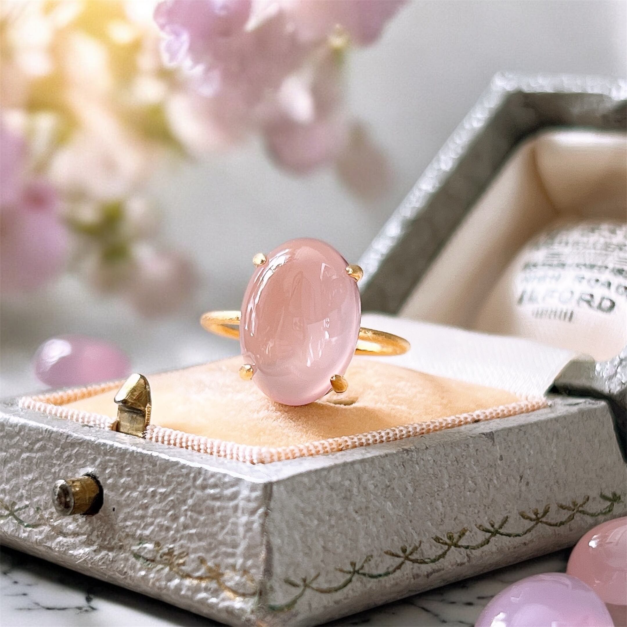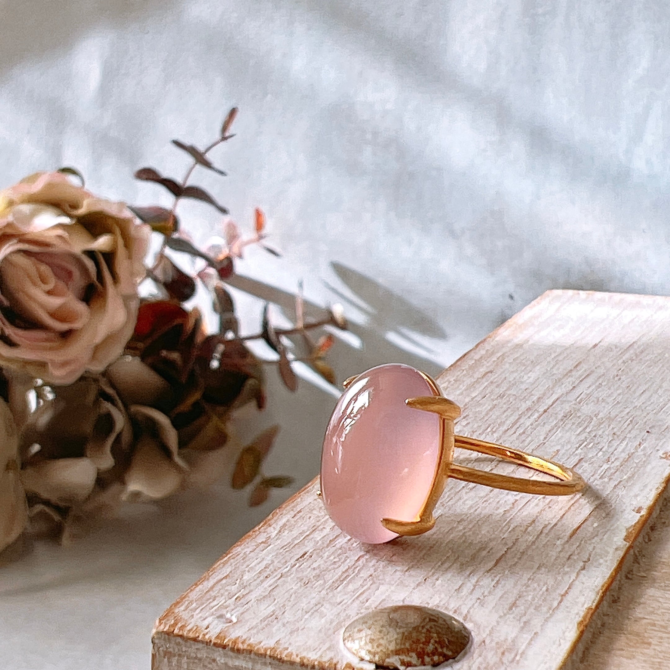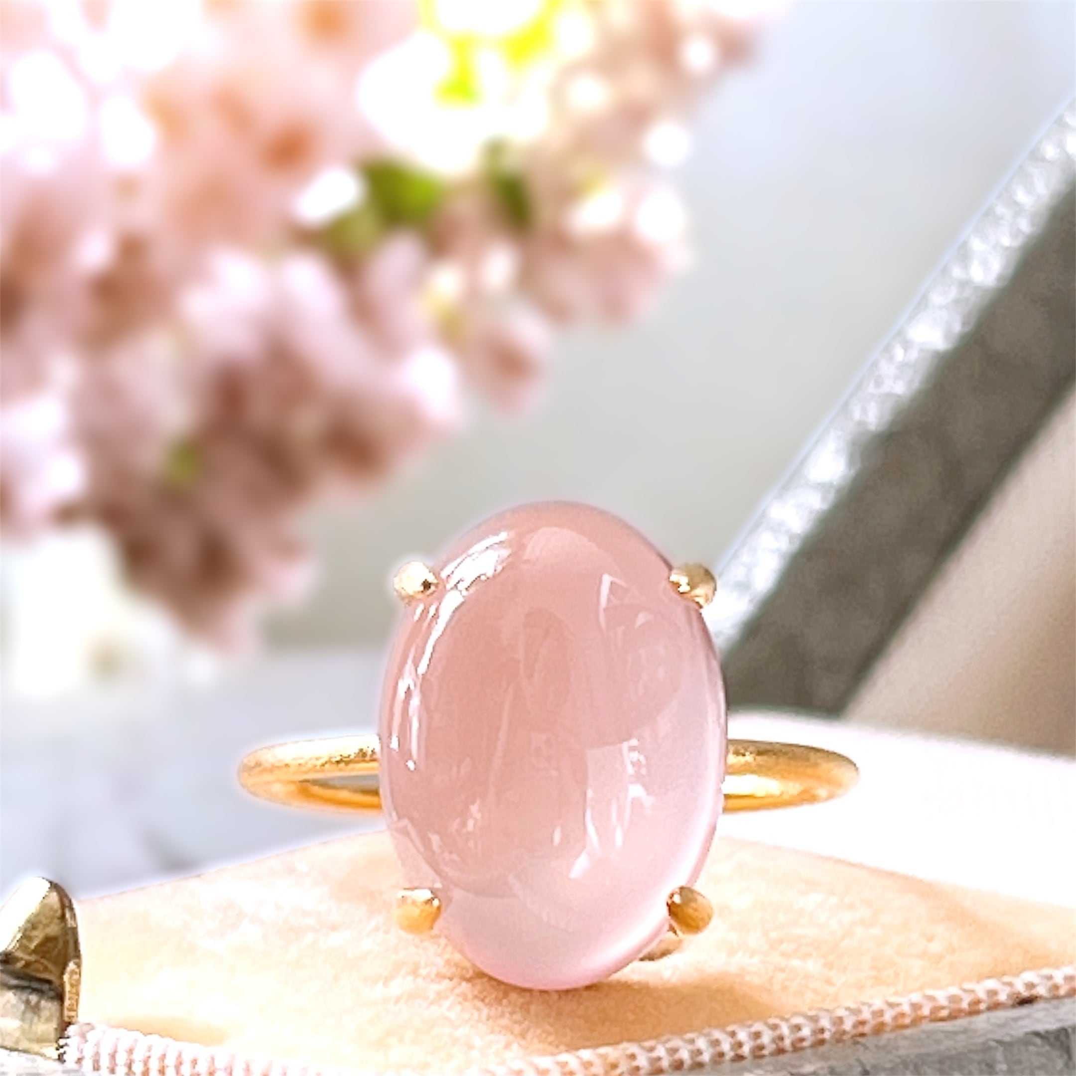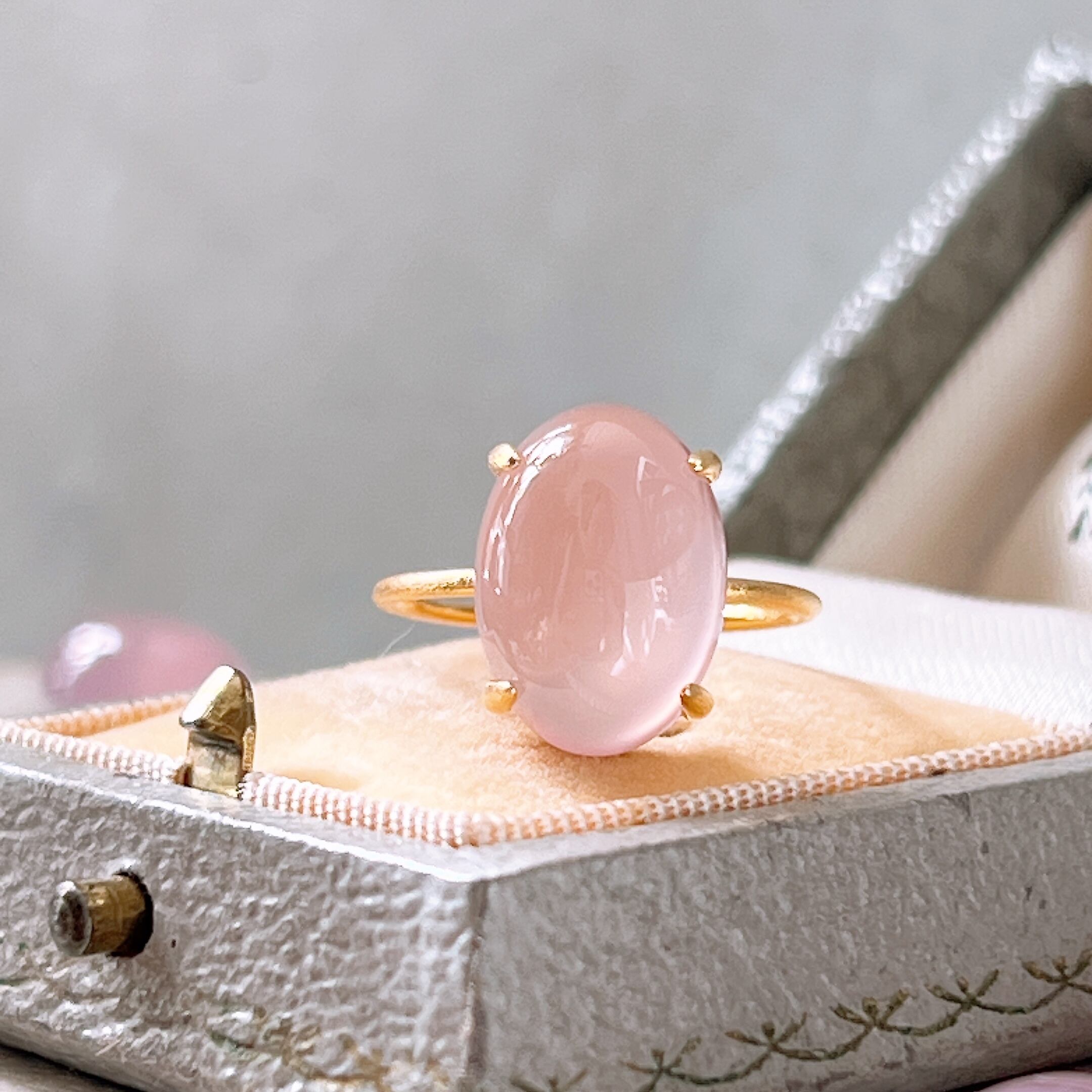 艶やかな透明感が美しいAAAランクのピンクパープルカルセドニーを使用した、上品で洗練された天然石リングです。