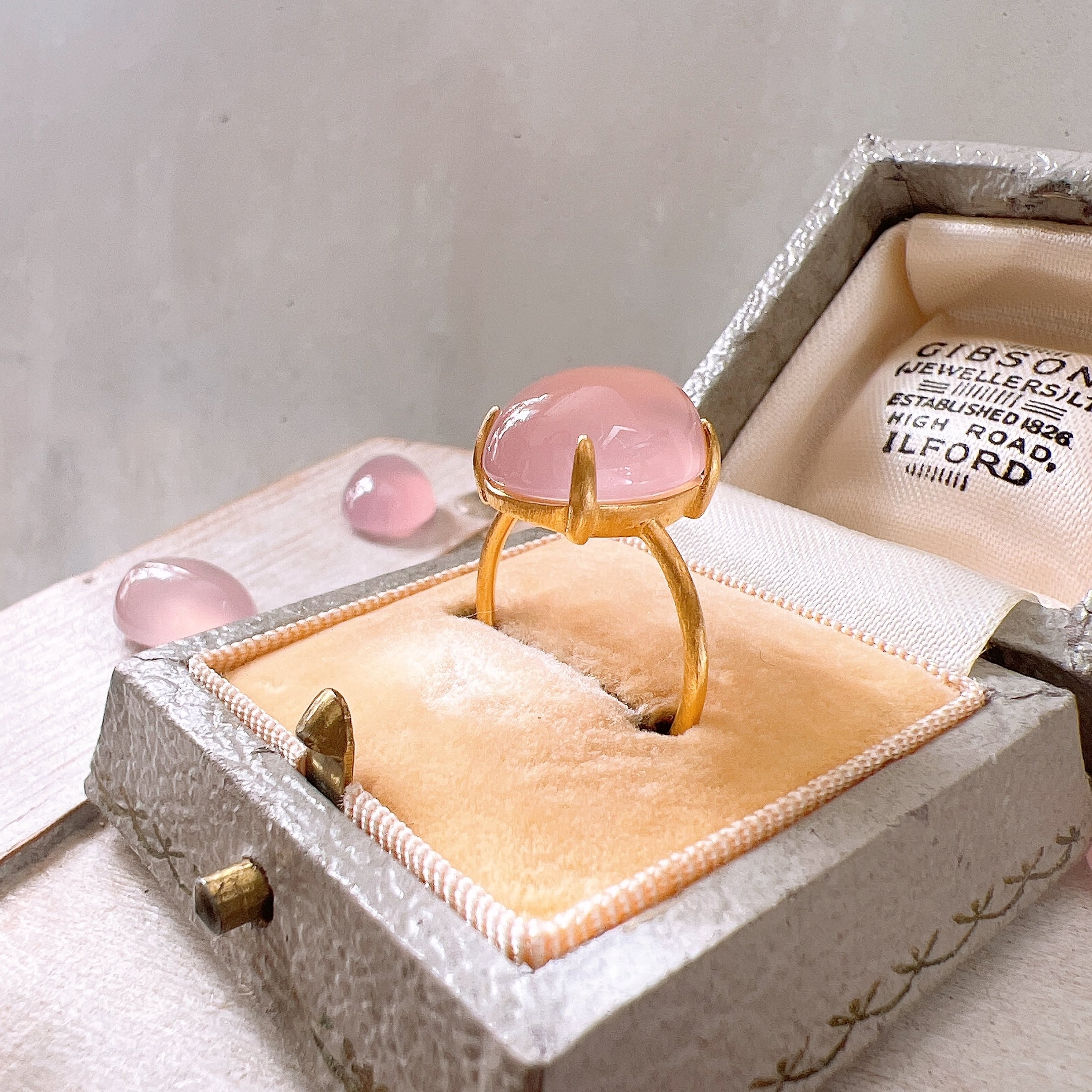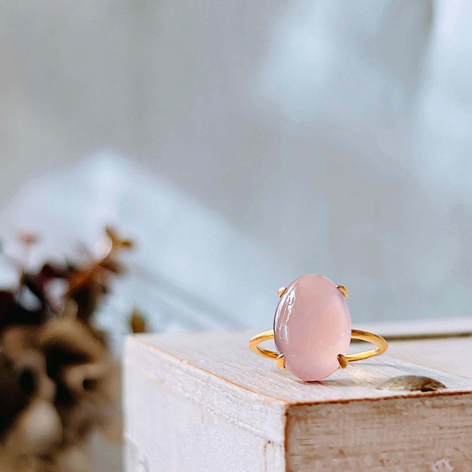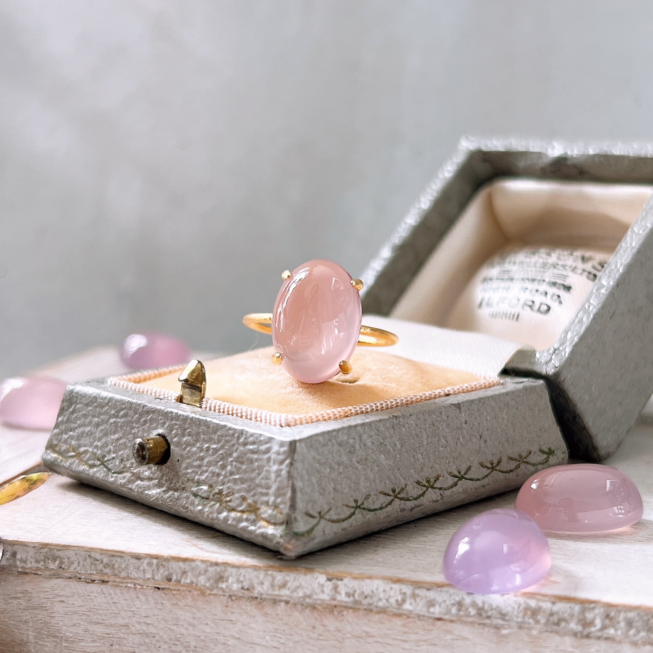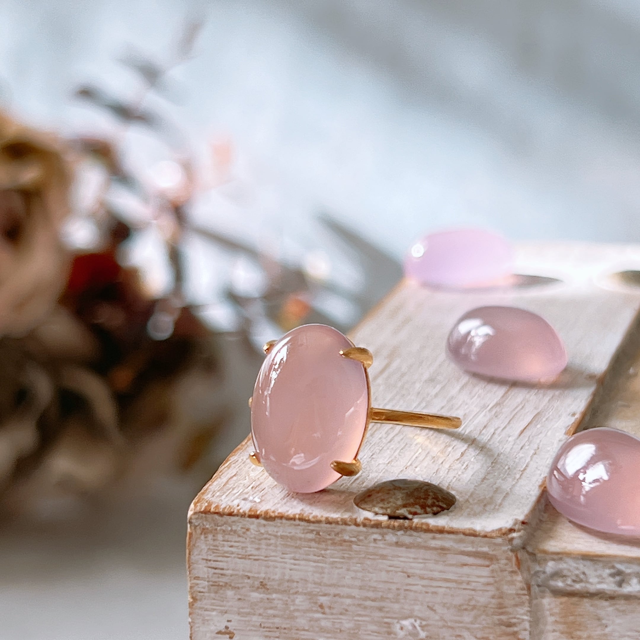 艶やかな透明感が美しいAAAランクのピンクパープルカルセドニーを使用した、上品で洗練された天然石リングです。