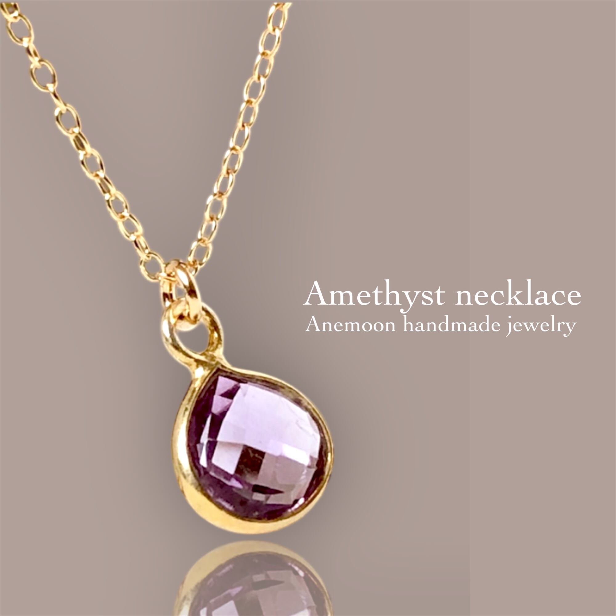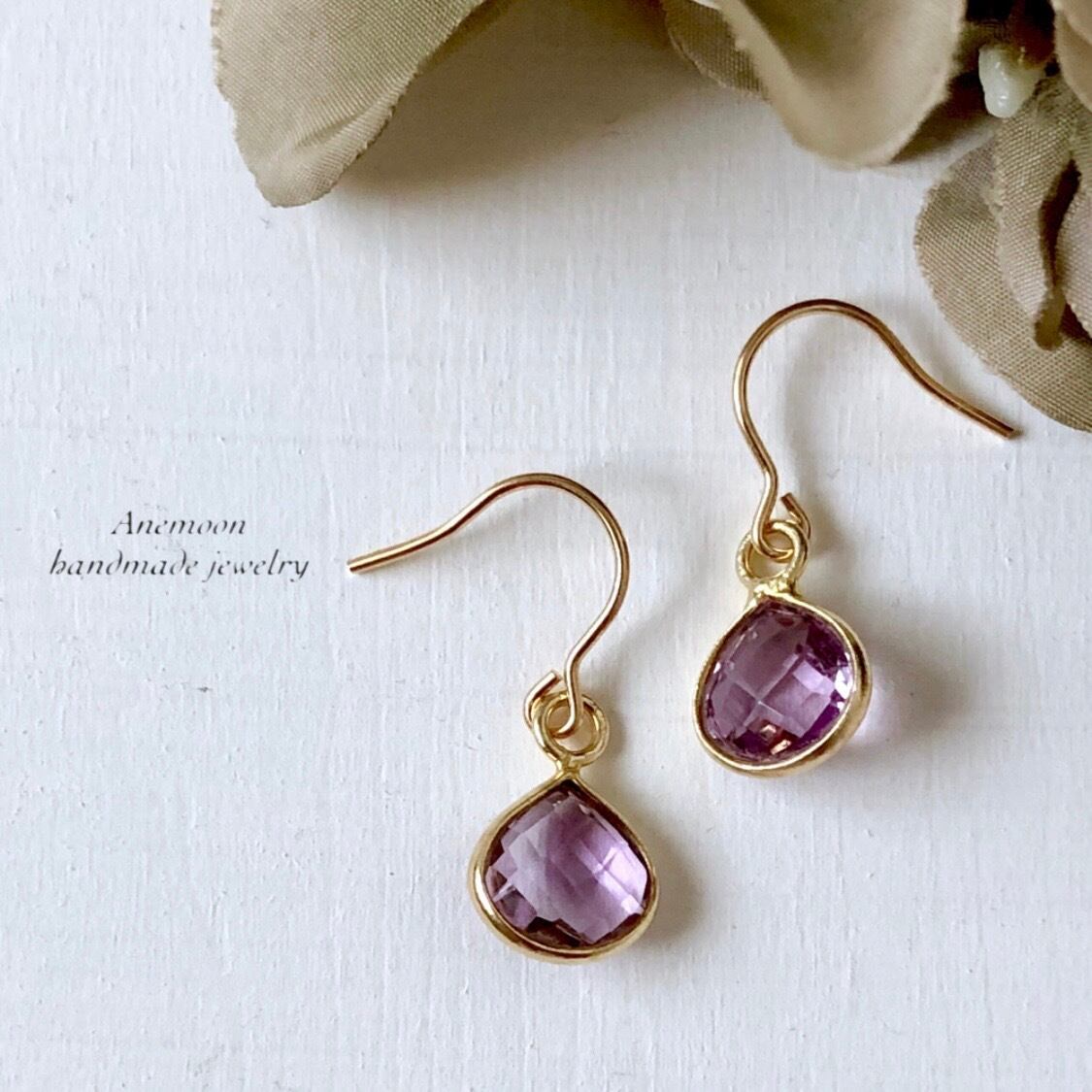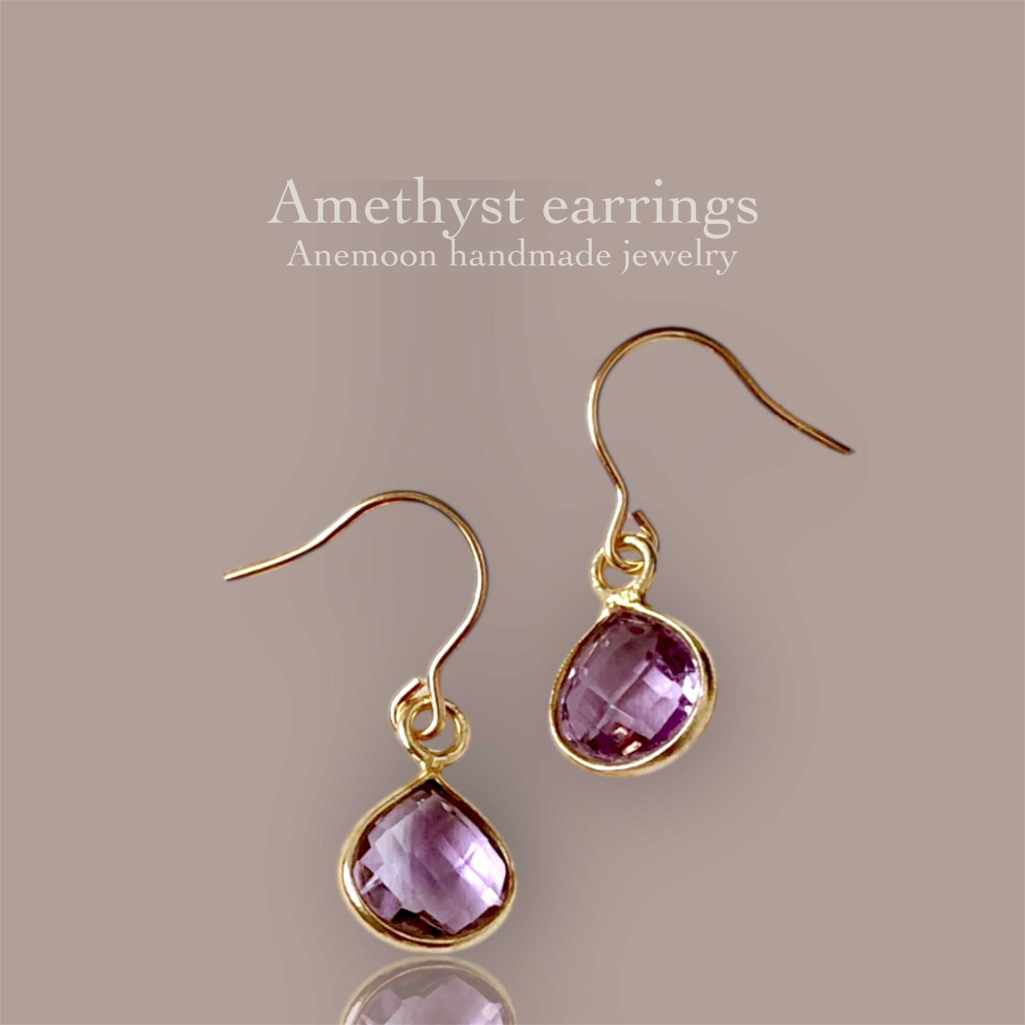 アメジスト 宝石質 AAA 2月誕生石 パープル 紫 マロン 天然石 ピアス イヤリング 14kgf ゴールドフィルド 金属アレルギー対応 樹脂ノンホール 上品 大人アクセサリー 華奢 シンプル 高級感 ギフト 誕生日 クリスマス プレゼント アネムーン