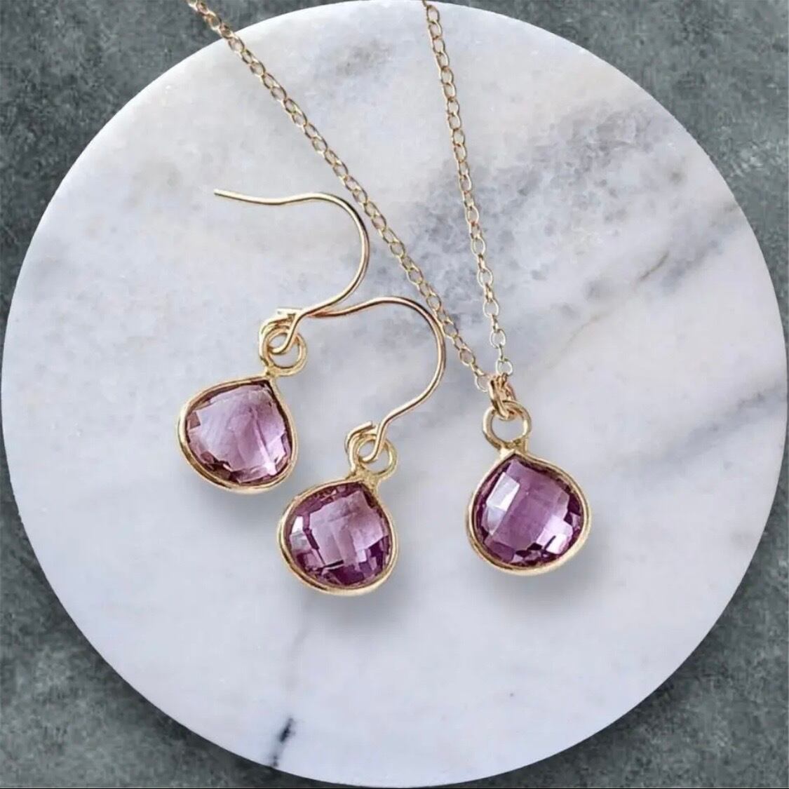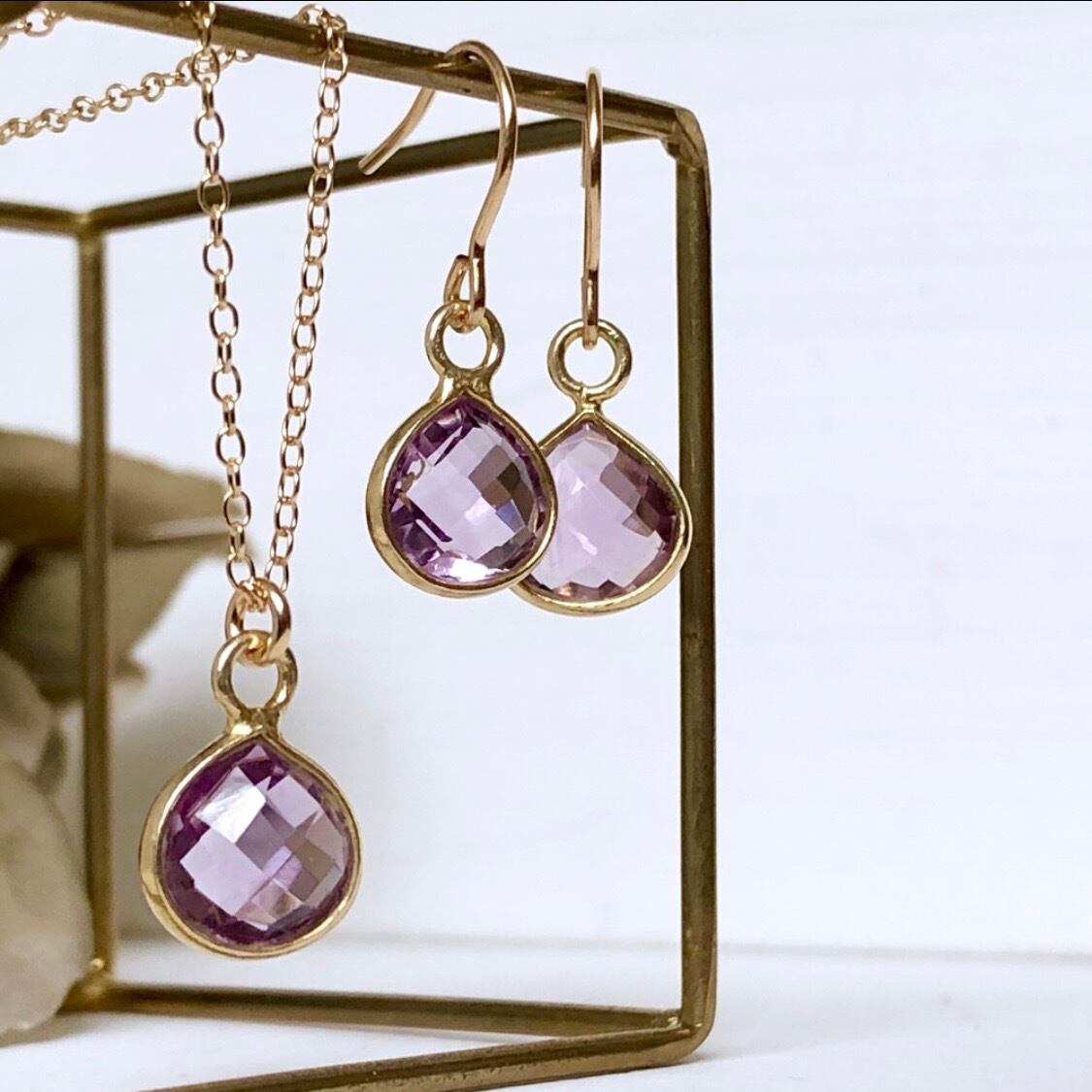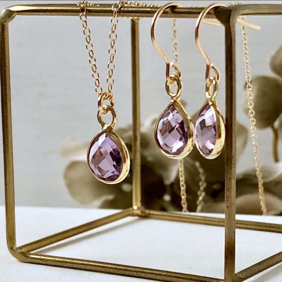 アメジスト 宝石質 AAA 2月誕生石 パープル 紫 マロン 天然石 ピアス イヤリング 14kgf ゴールドフィルド 金属アレルギー対応 樹脂ノンホール 上品 大人アクセサリー 華奢 シンプル 高級感 ギフト 誕生日 クリスマス プレゼント アネムーン