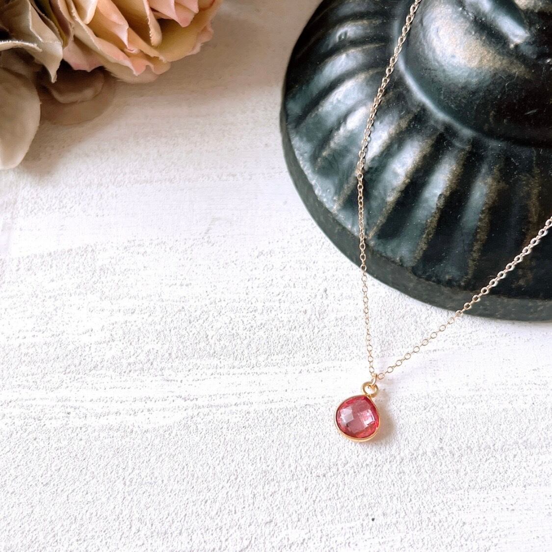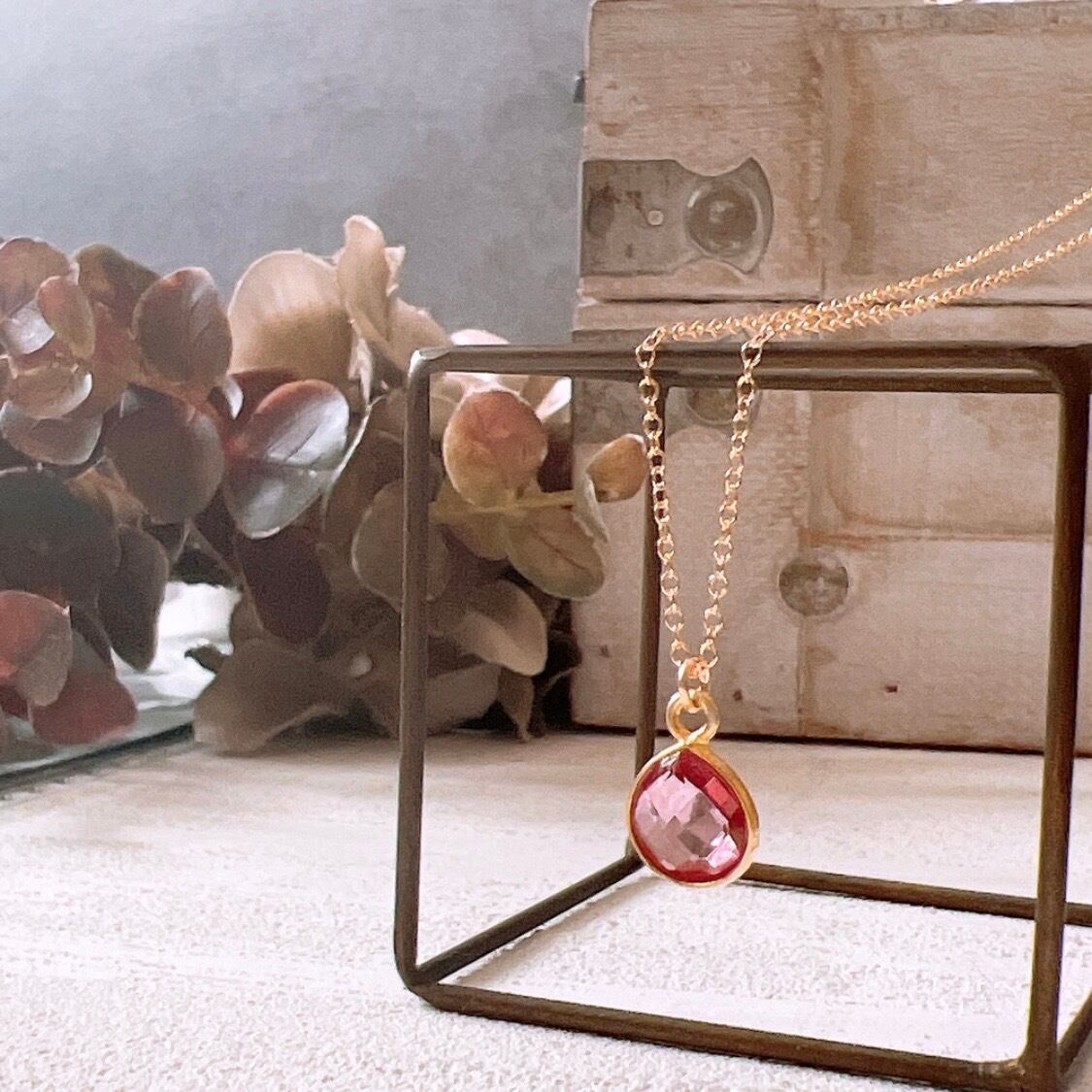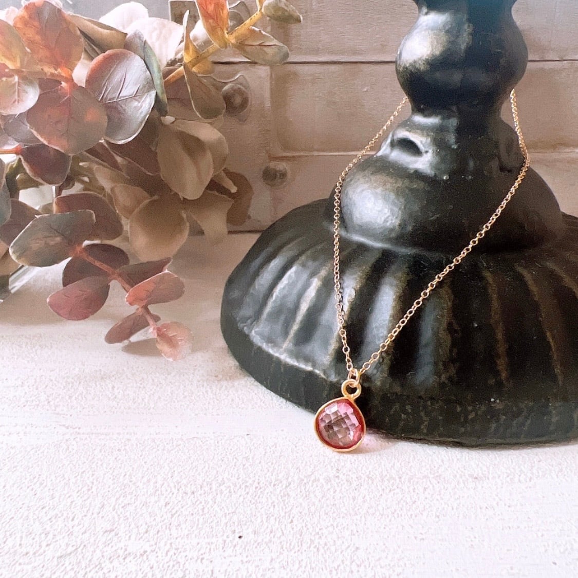 透明感のあるピンクが胸元で揺れる、宝石質ピンクトパーズの上品ネックレス(11月誕生石)