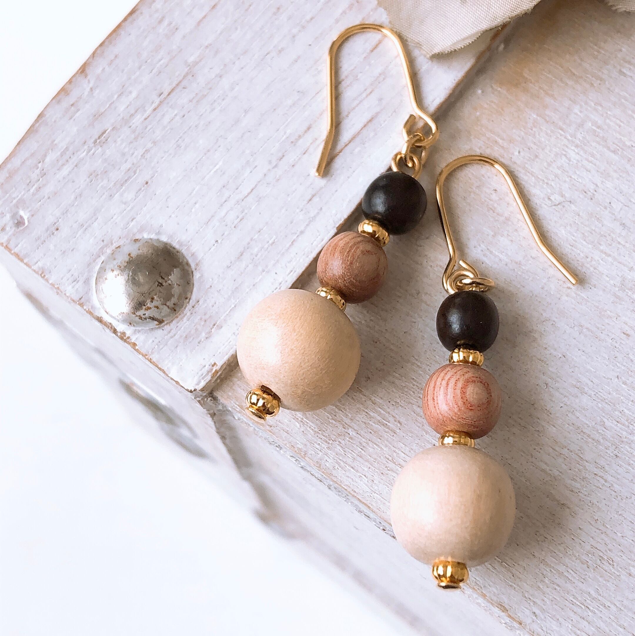 3種類のウッドを使ったナチュラルな雰囲気のピアス/イヤリング