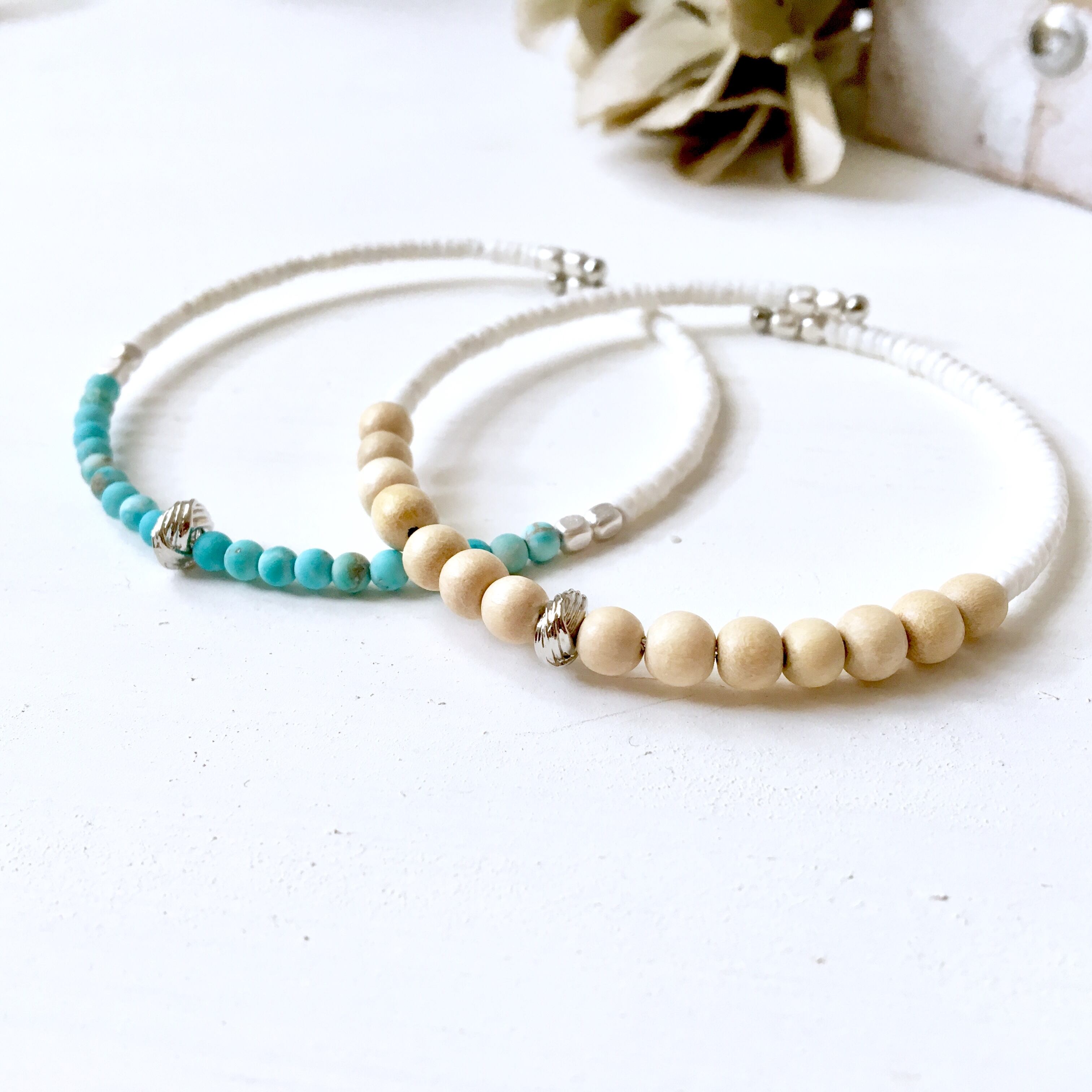 ターコイズとホワイトシェルが夏の装いにぴったりなシンプルブレスレット