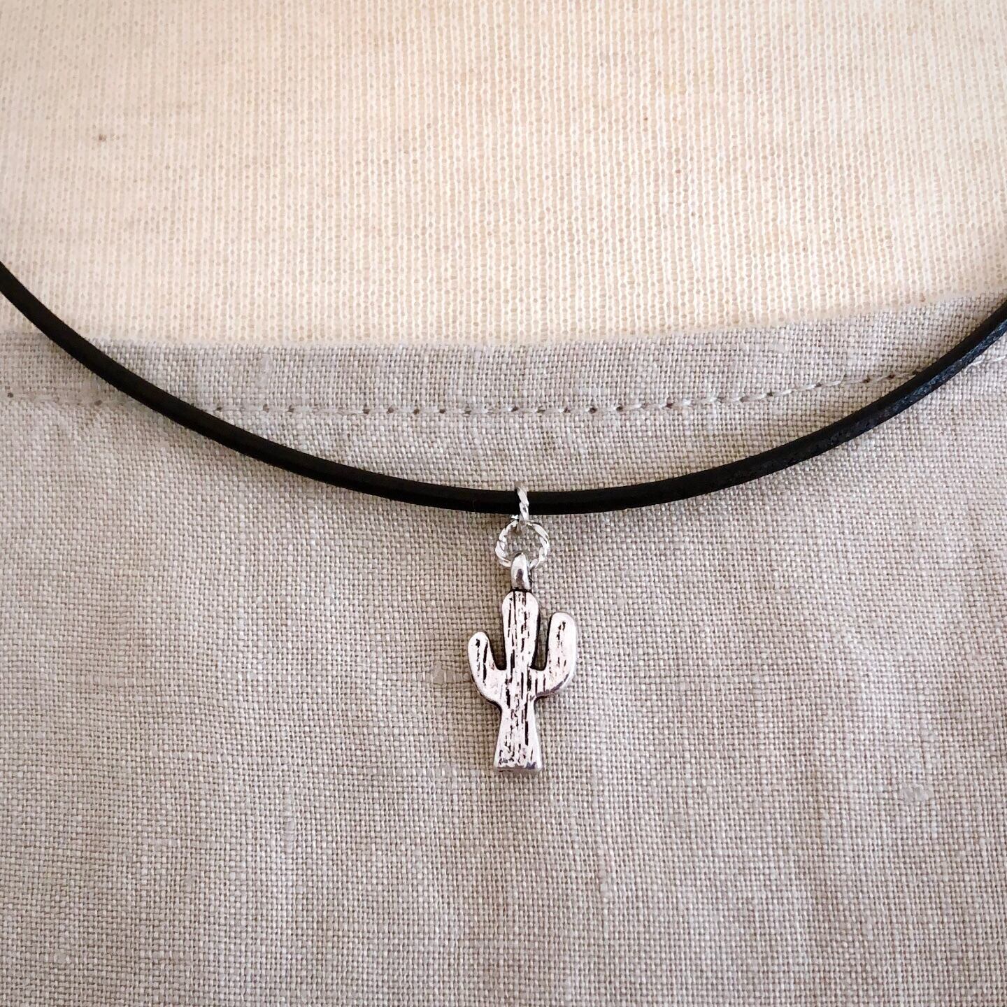 フランス製サボテンモチーフのシンプルな本革紐(レザー)ネックレス