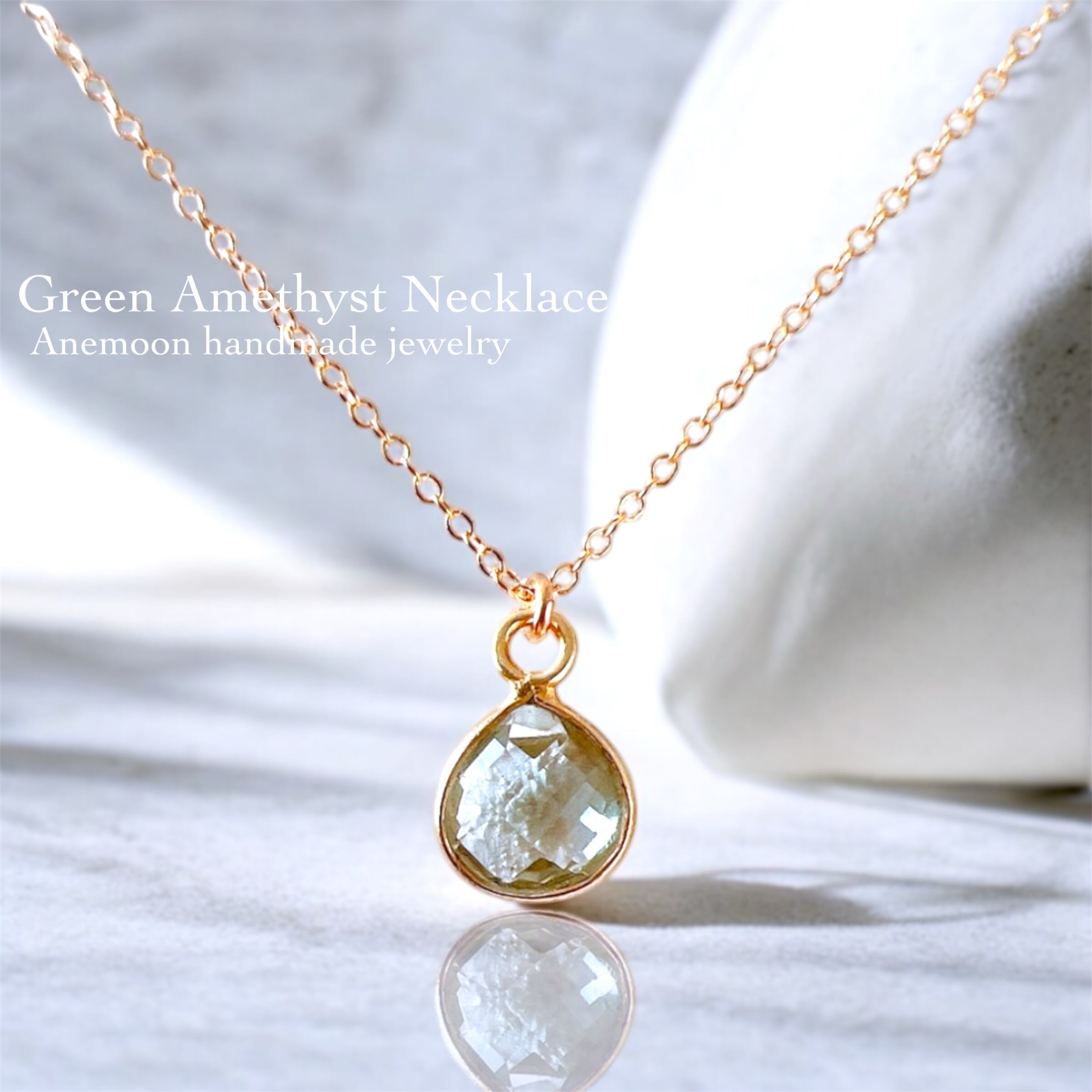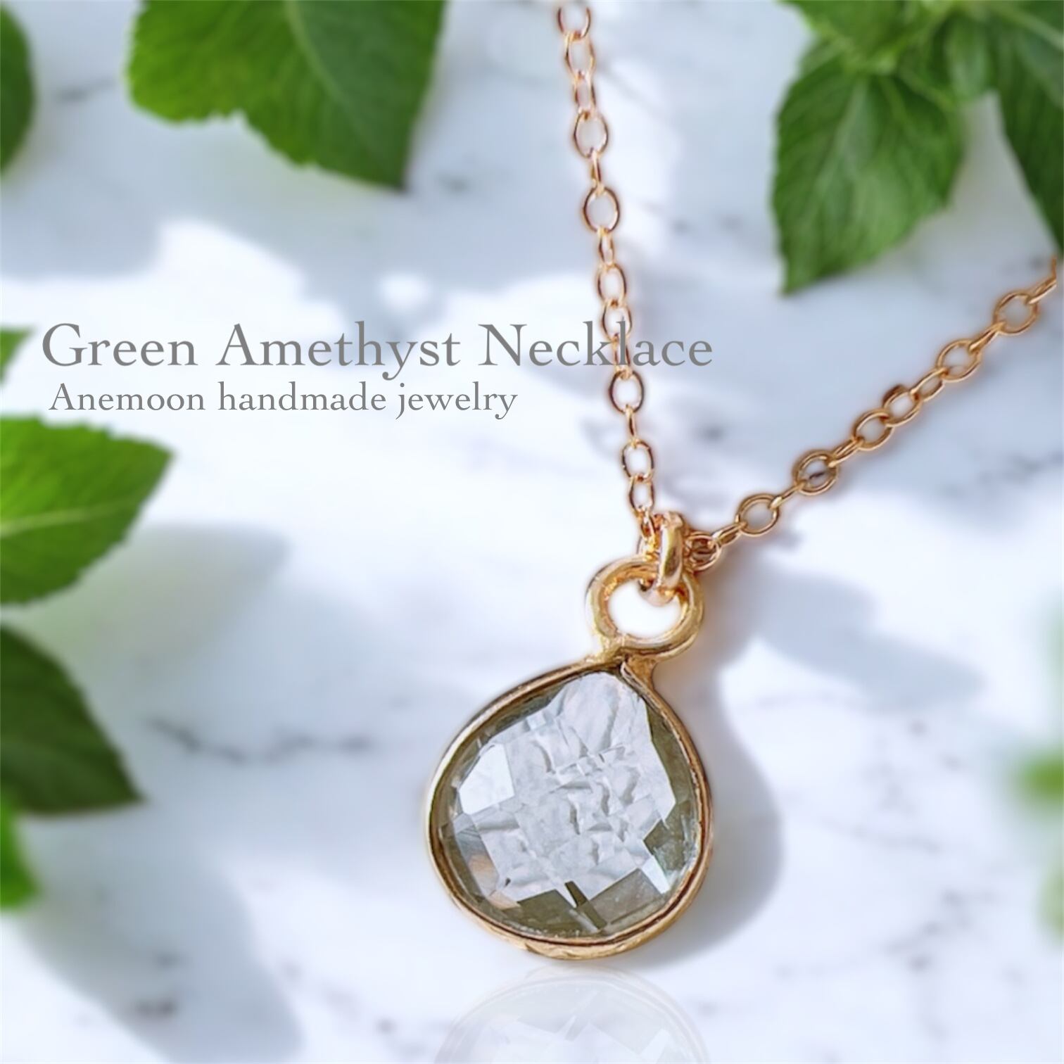 淡く上品なグリーンの発色が美しい、宝石質グリーンアメジストのネックレス。