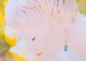 小さなターコイズのブルーストーンとゴールドチェーンがゆらゆらと揺れるアメリカンピアスタイプ
