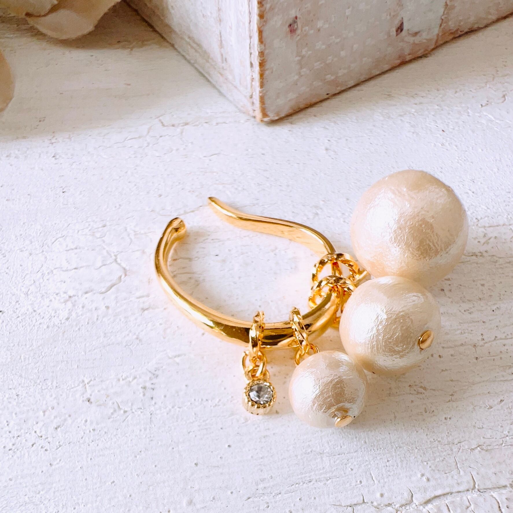 3種類のコットンパールやクリスタルストーンをお好みでボリューム調整することができるイヤーカフ(イヤーカフス)。