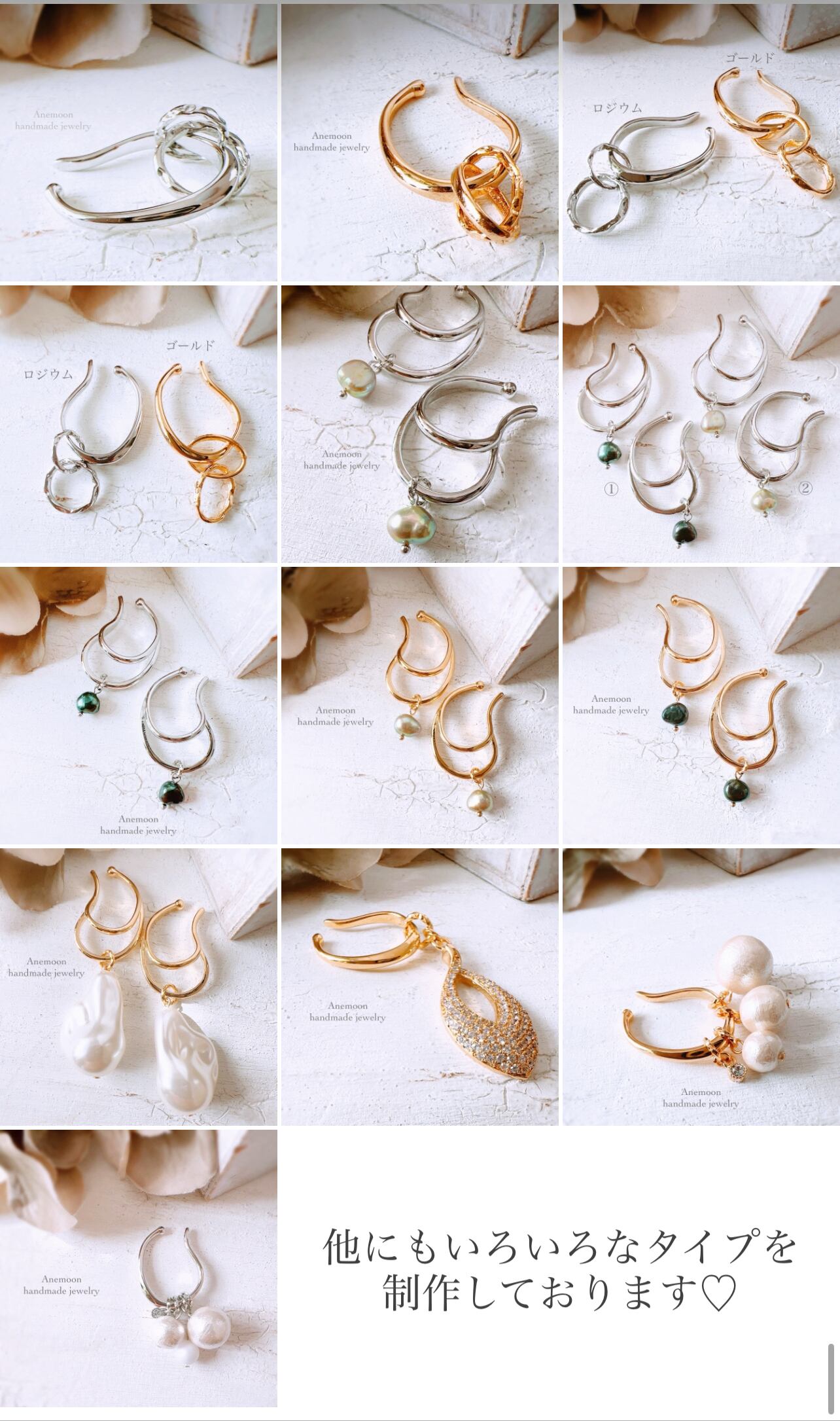 使うシーンにあわせてボリューミーにも、シンプルにパールをひとつ選んで、飾りをつけずにシンプルなイヤカフとしてなど、これ一つあれば多彩なイヤカフアレンジを楽しむ事が出来ます。
